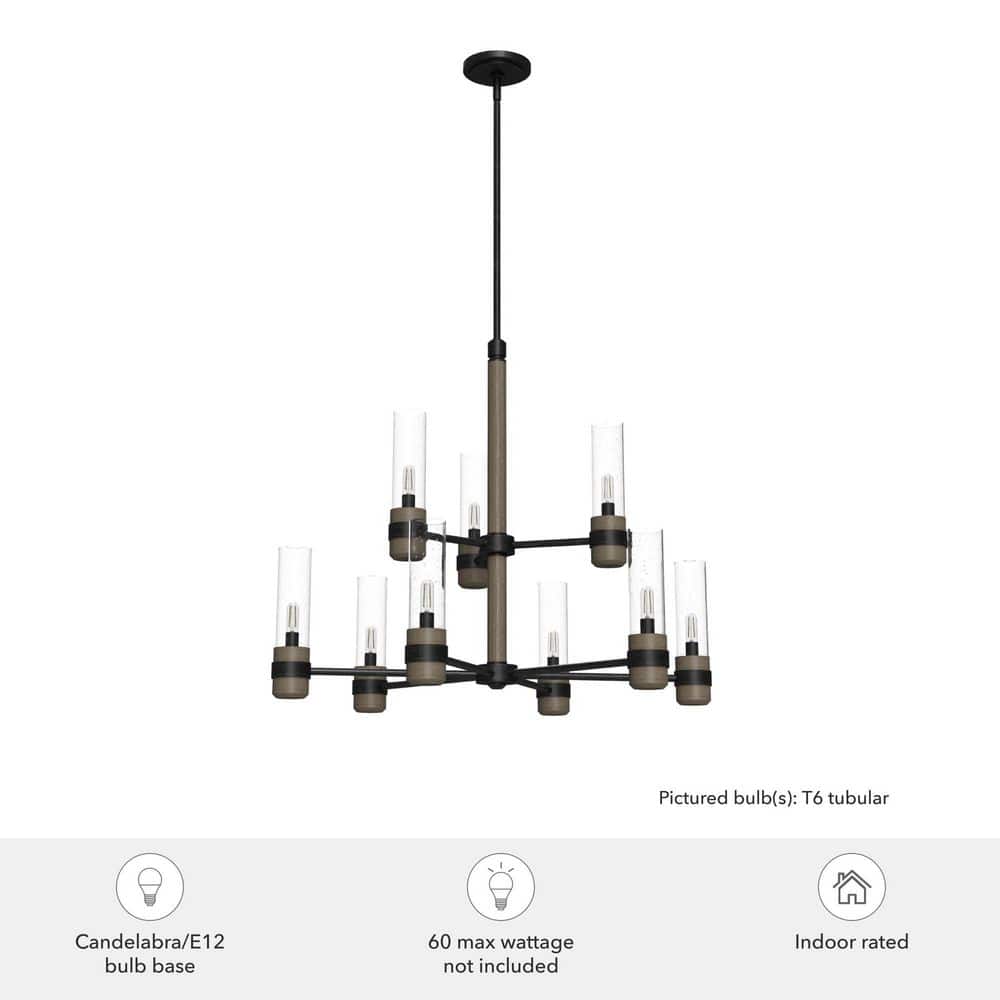 Hunter River Mill 9-Light Rustic Iron Candlestick Chandelier with Clear Seeded Glass Shades