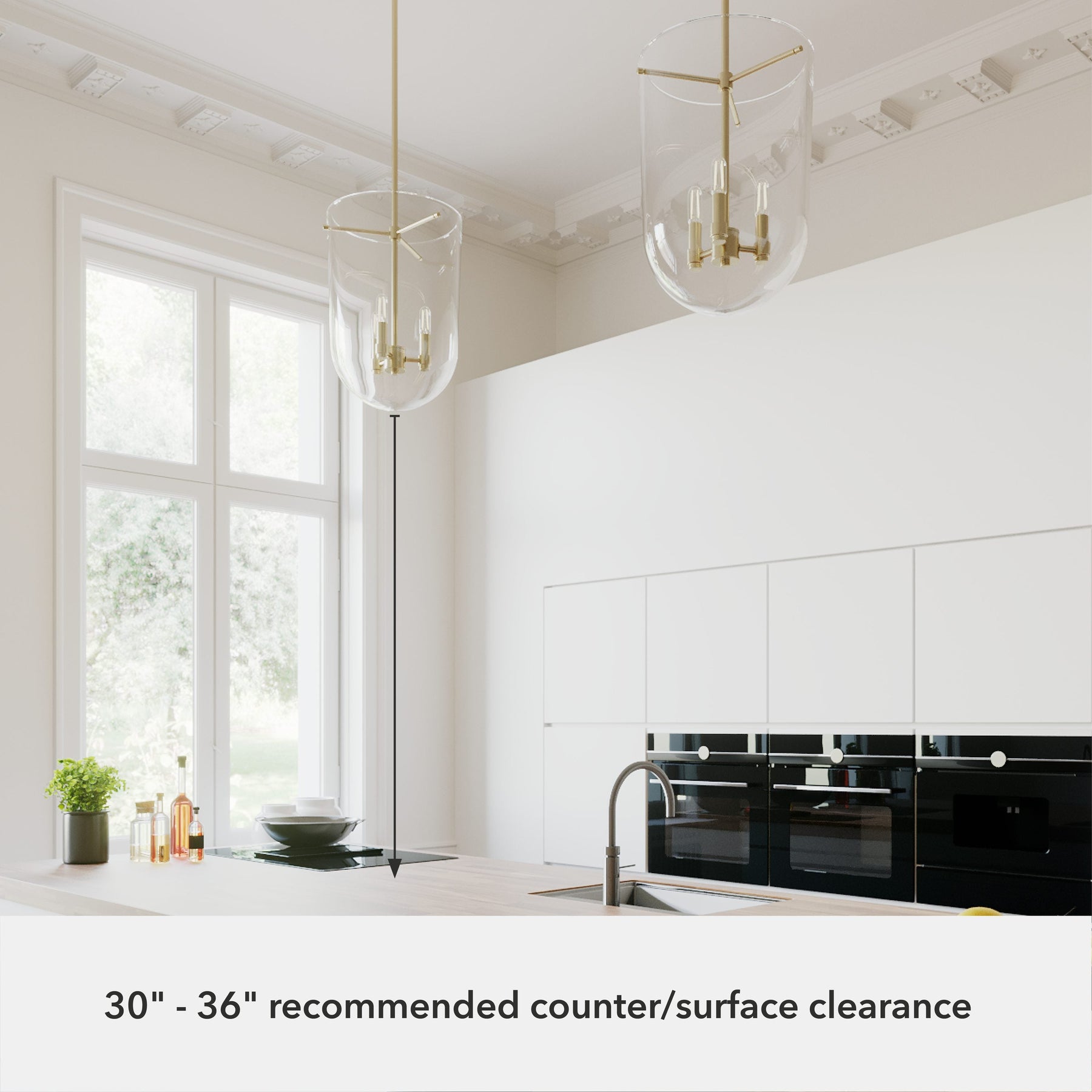 Illuminate your space with the Hunter Sacha 3-Light Pendant. This stylish fixture features a modern Alturas Gold finish paired with clear glass urn shades to deliver a blend of contemporary elegance and warm, inviting lighting in kitchens, dining rooms, and living areas.