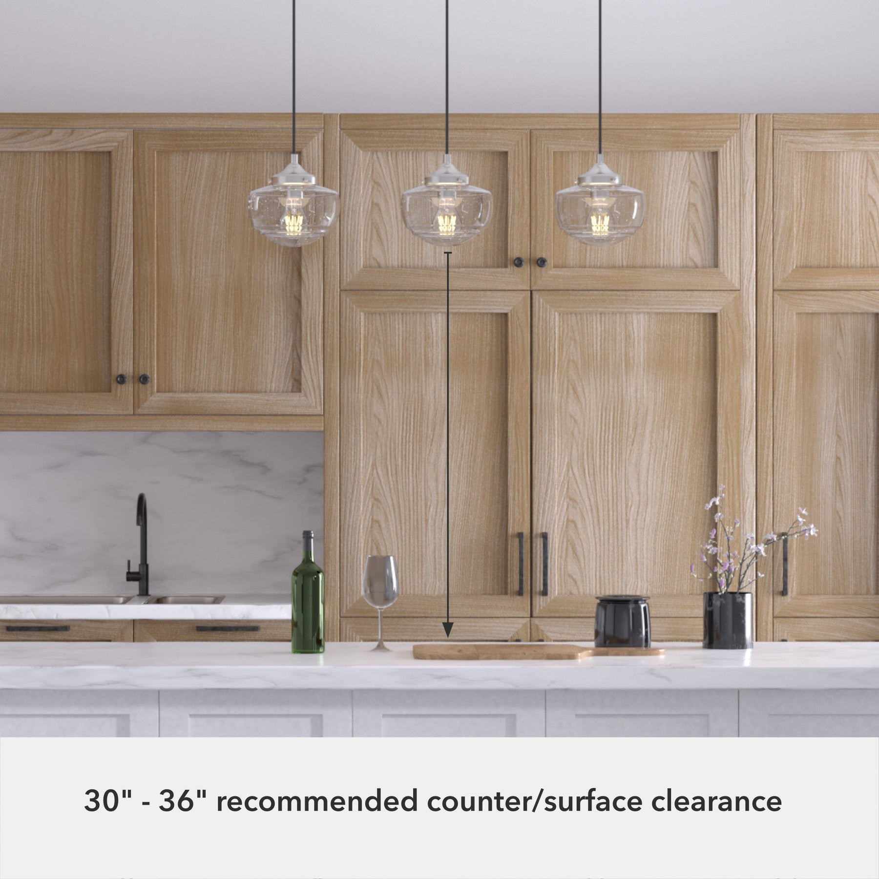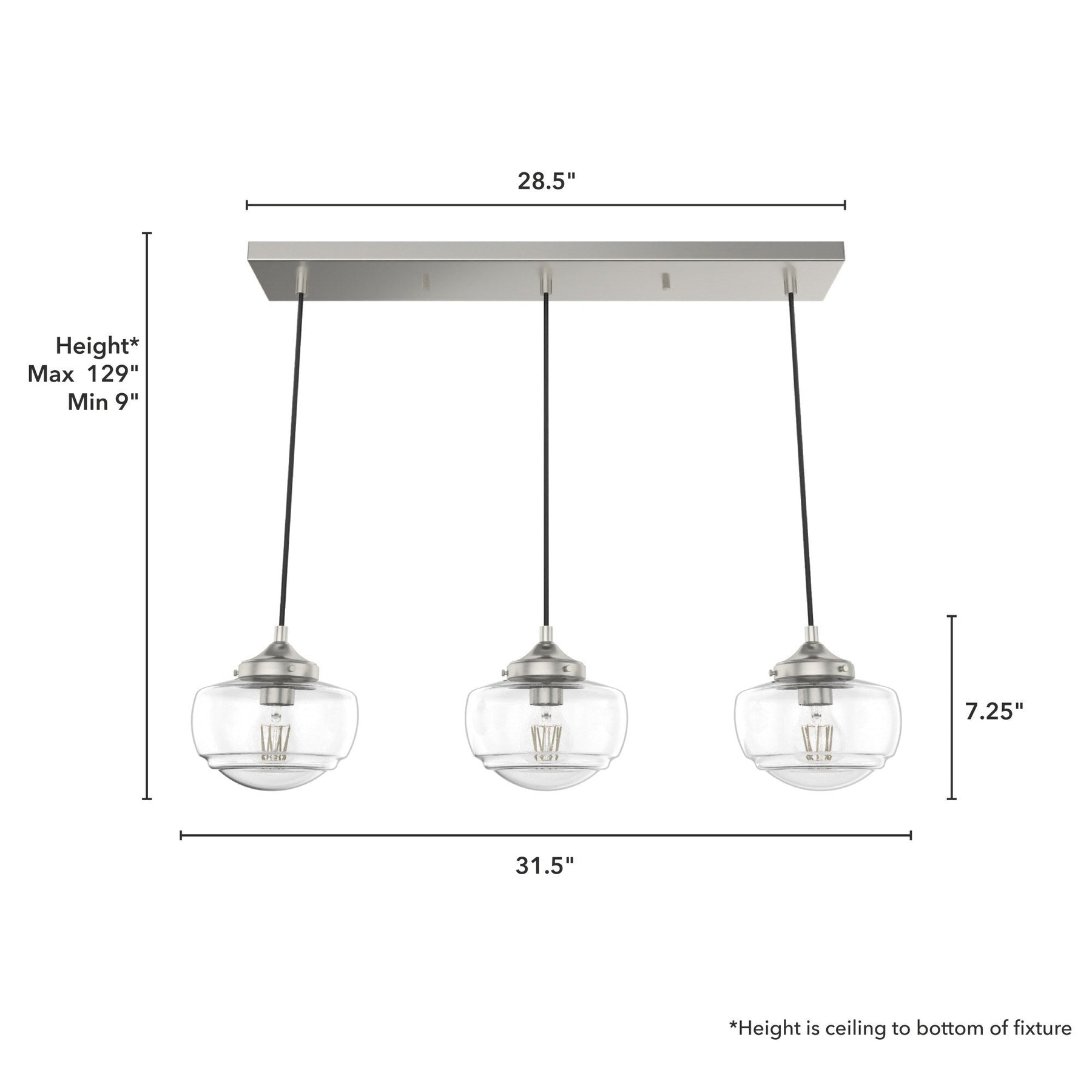 Premium Design: Transitional style with brushed nickel finish and seeded glass.