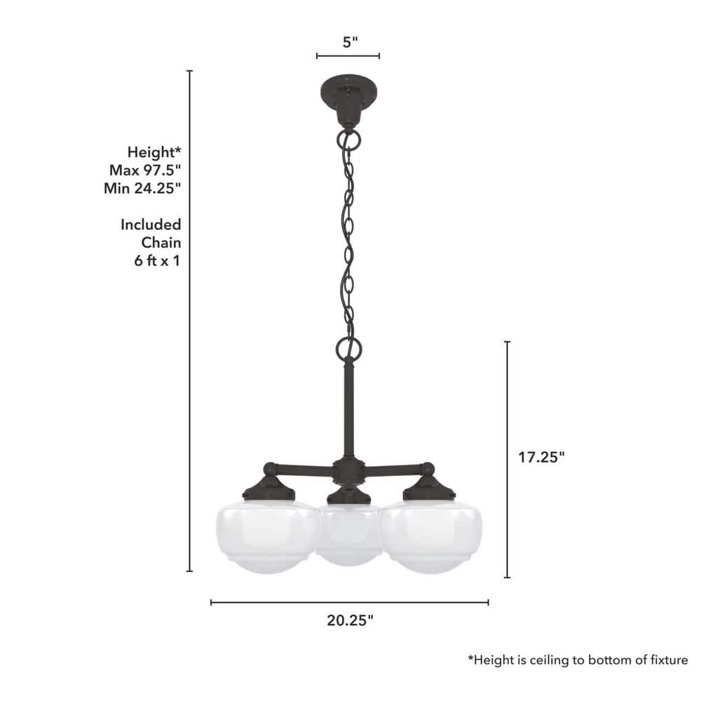 Hunter Saddle Creek 3-Light Noble Bronze Schoolhouse Chandelier with Cased White Glass Shades