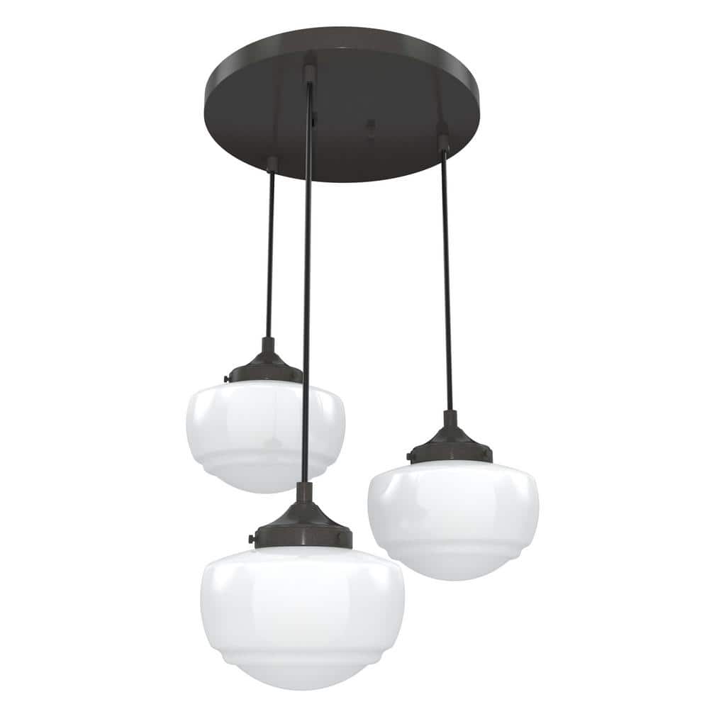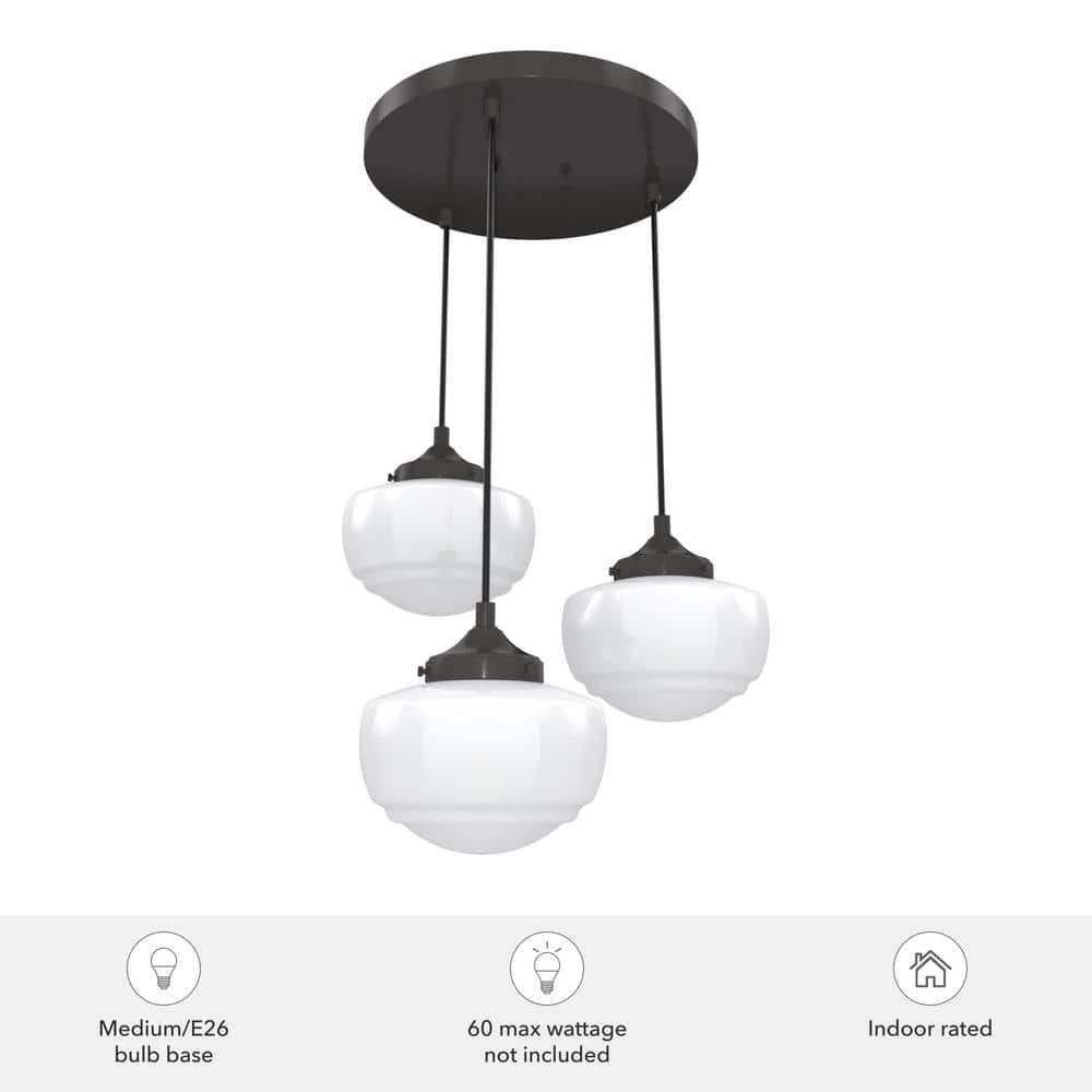 Hunter Saddle Creek 3-Light Noble Bronze Schoolhouse Chandelier with Cased White Glass Shades