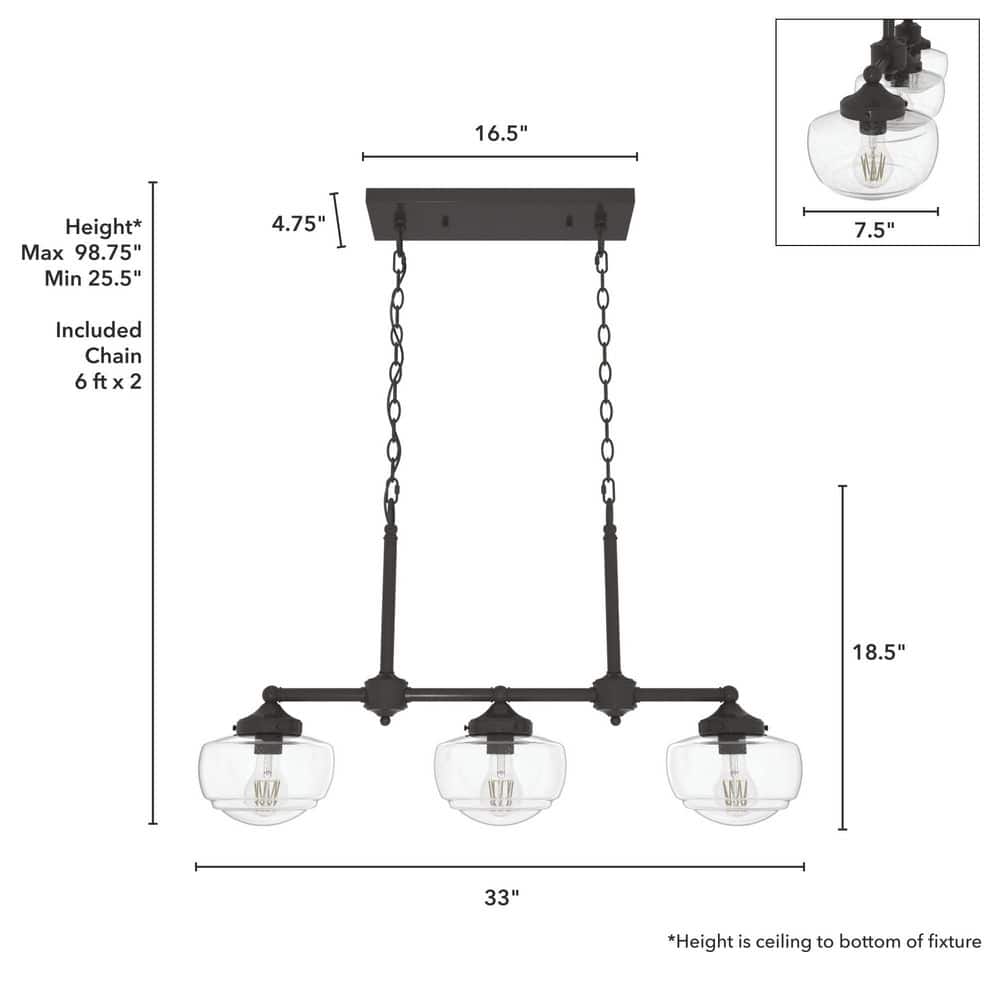 Adjustable Hanging: Features a customizable 72-inch chain to fit various ceiling heights, from 25.5 to 98.75 inches.