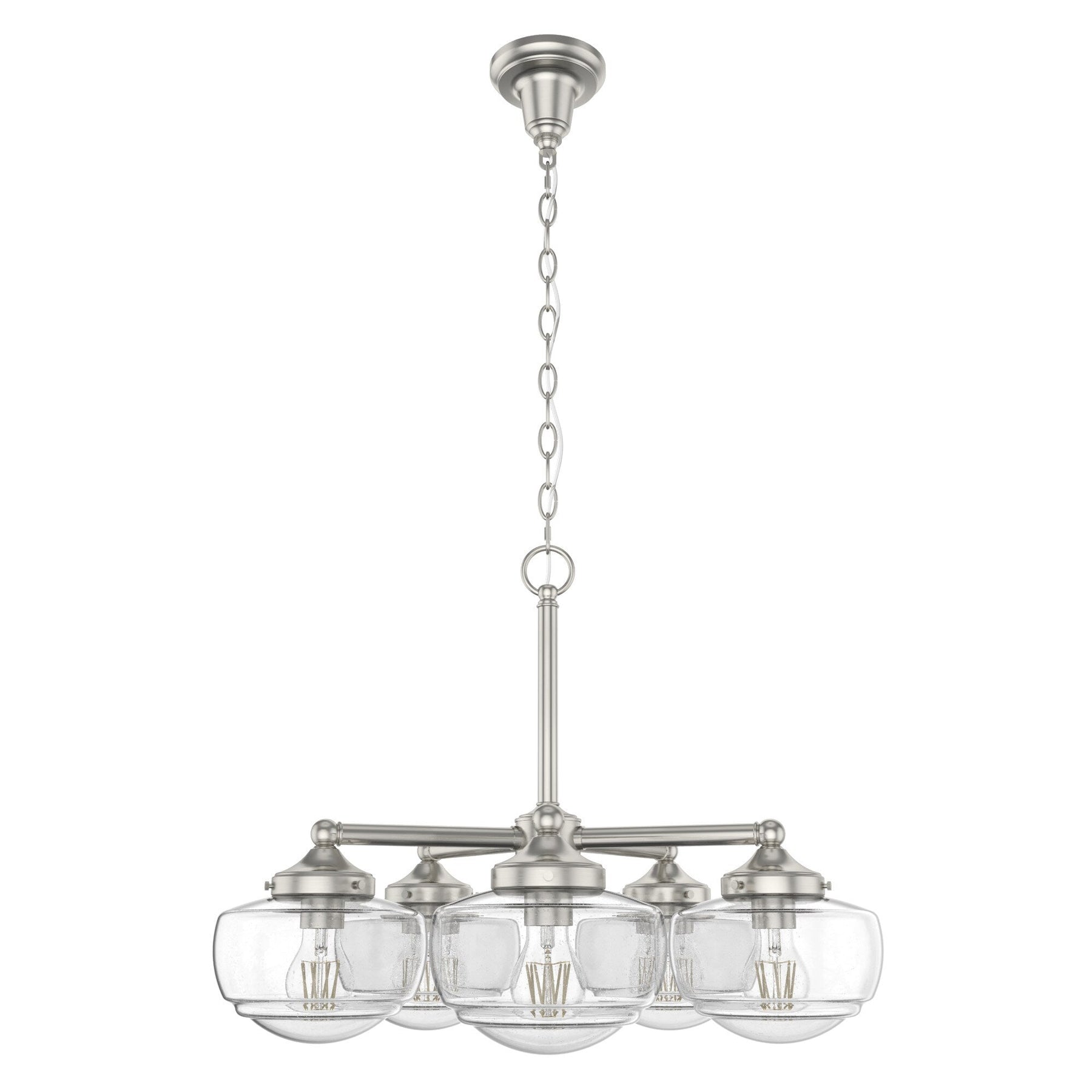Premium Design: Features a brushed nickel finish with seeded glass shades, adding a touch of elegance and charm.