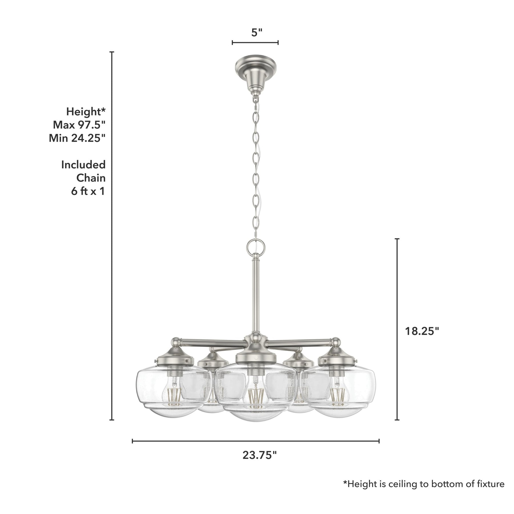 Adjustable Height: Comes with a 72-inch chain, allowing customization of hanging length from 24.25 inches to 97.5 inches.