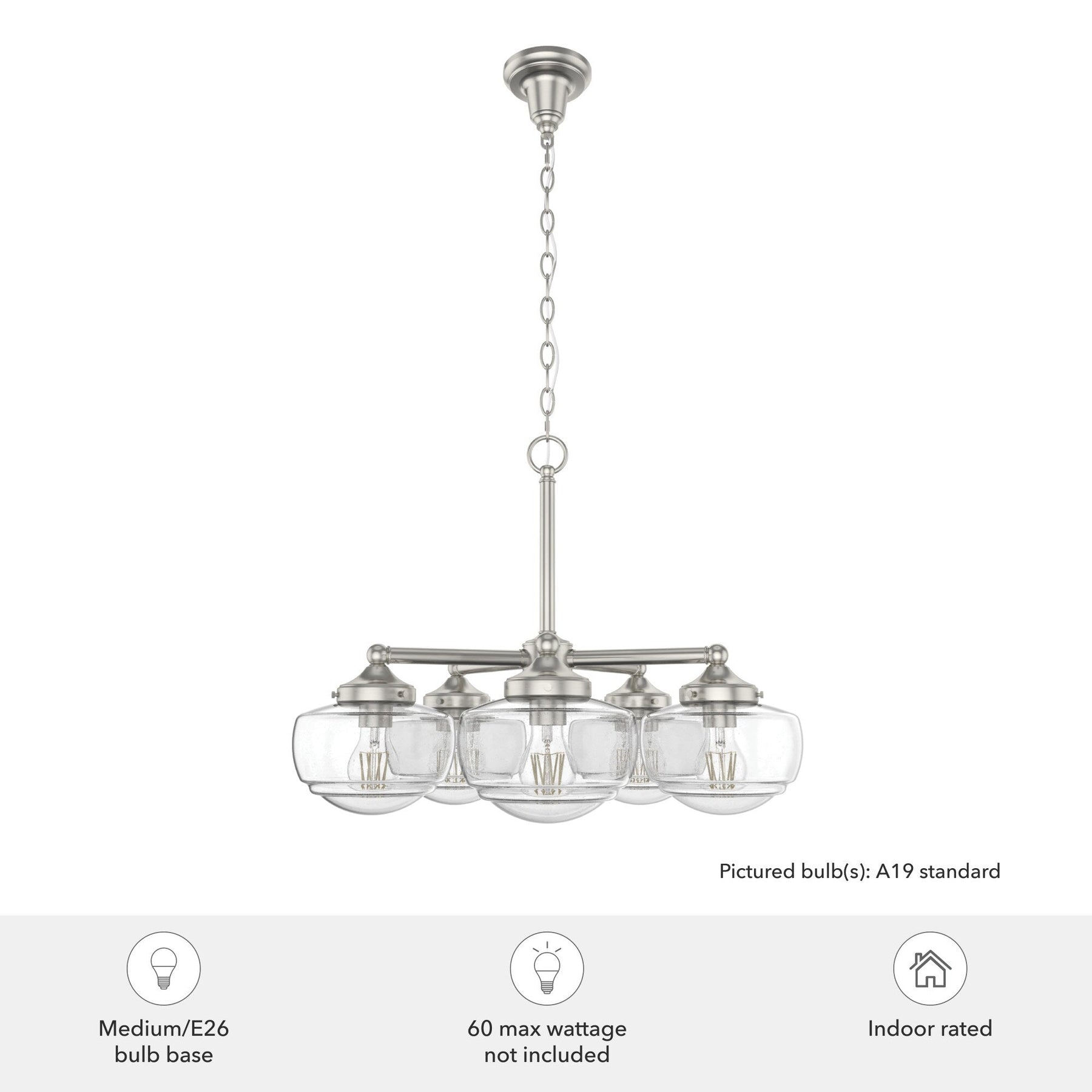 Flexible Lighting: Uses five E26-base bulbs for versatile lighting solutions (bulbs not included).