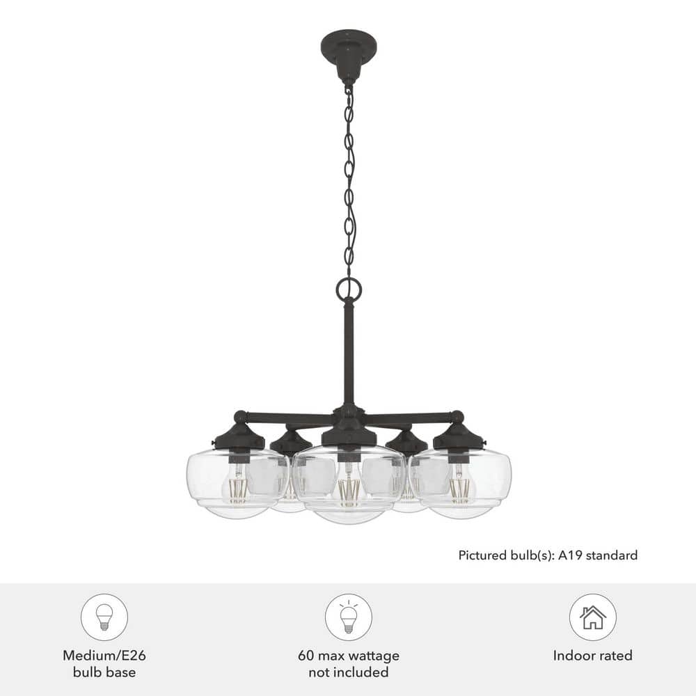 Hunter Saddle Creek 5-Light Noble Bronze Schoolhouse Chandelier with Clear Seeded Glass Shades