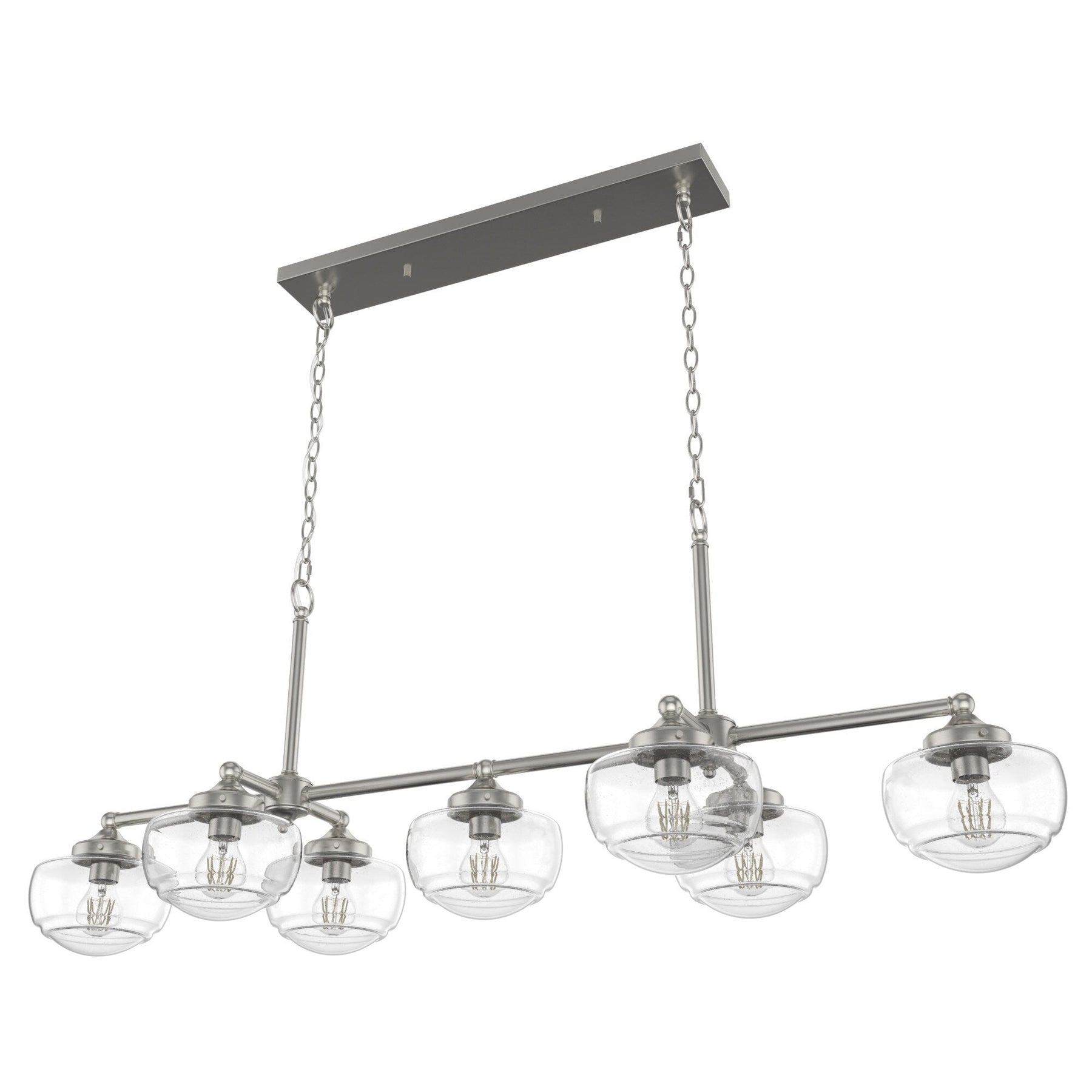 Elevate your living space with the Hunter Saddle Creek 7-Light Brushed Nickel Transitional LED Chandelier. Designed by lighting experts, this fixture combines modern elegance with practical functionality, featuring premium seeded glass and a brushed nickel finish that complements any room.