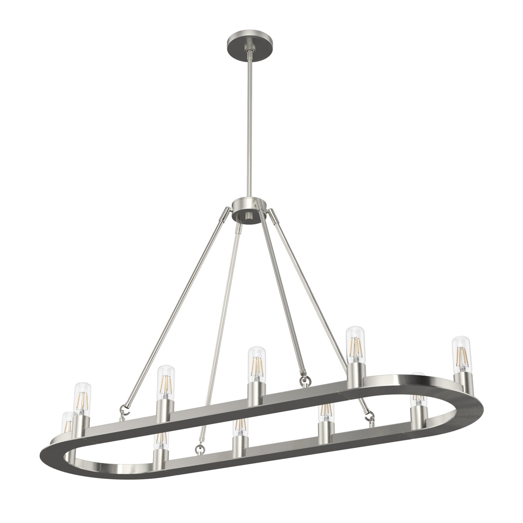 Illuminate your home in sleek sophistication with the Hunter Saddlewood 10-Light Chandelier. Its transitional design in brushed nickel adds a touch of modern elegance to any kitchen, living room, or dining area. Crafted from high-quality metal, this chandelier is designed to last while offering fully dimmable lighting for customizable ambiance.