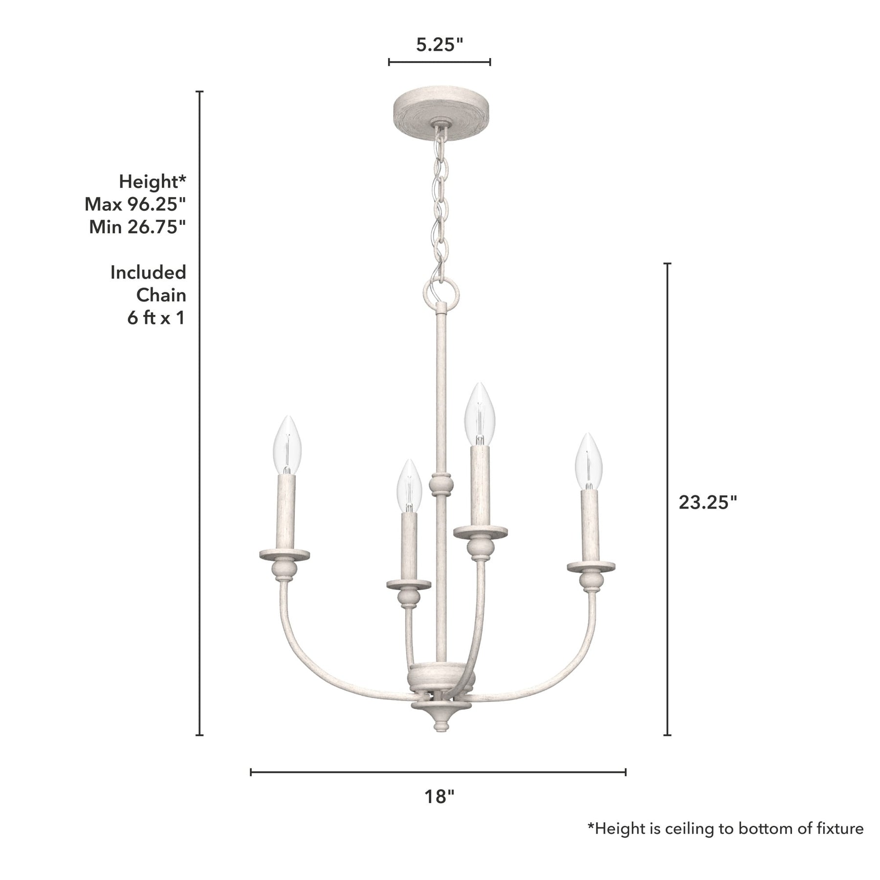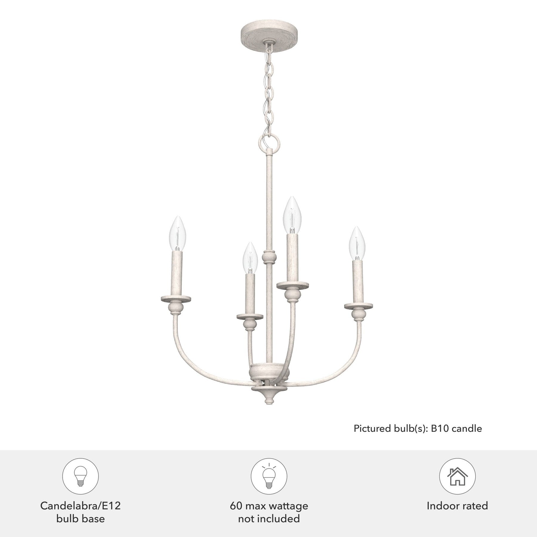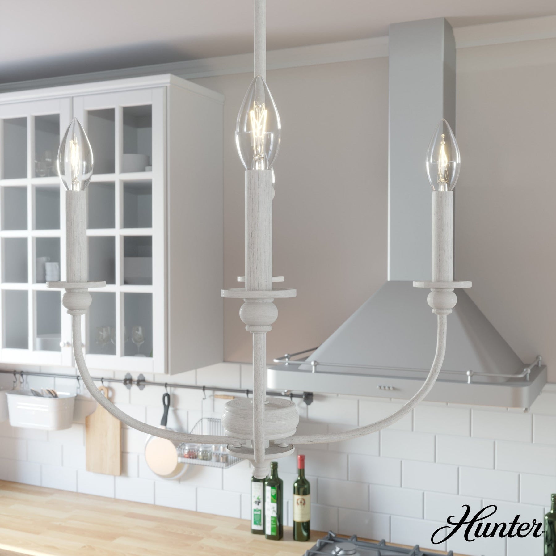 Illuminate your living spaces with elegance and a touch of rustic charm with the Hunter Southcrest 4-Light Distressed White LED Chandelier. Designed by lighting experts at Hunter, this transitional fixture effortlessly enhances kitchens, dining rooms, and foyers with its timeless appeal.