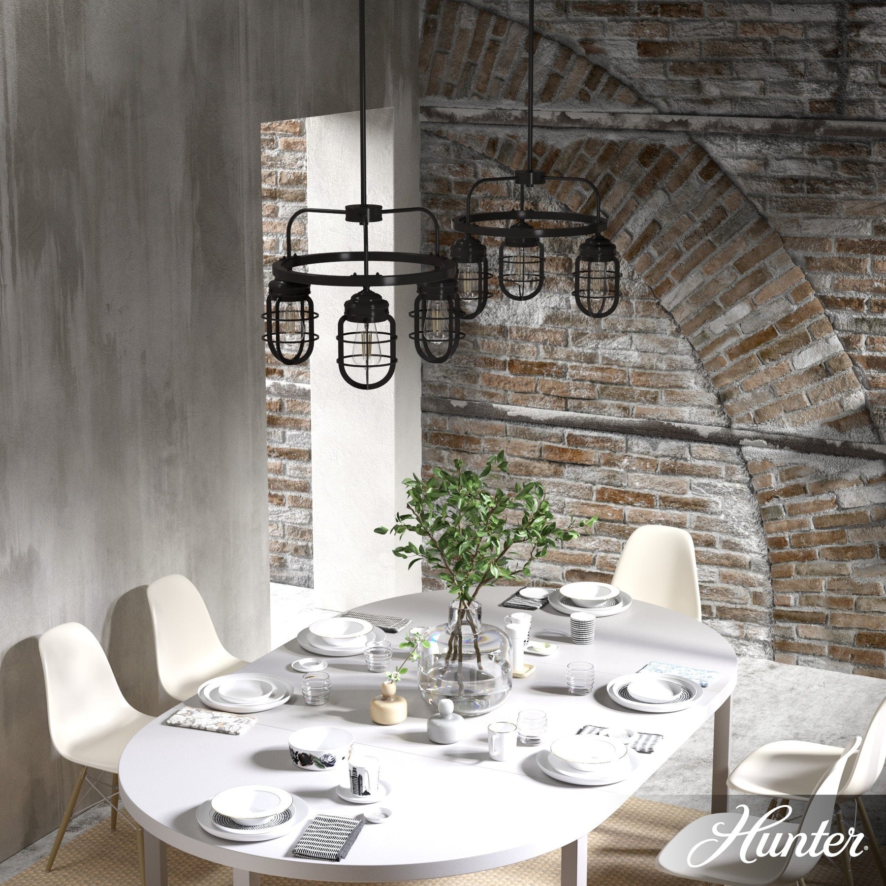 Elevate your home interior with the sophisticated industrial style of the Hunter Starklake Chandelier and create a space that showcases your impeccable taste.