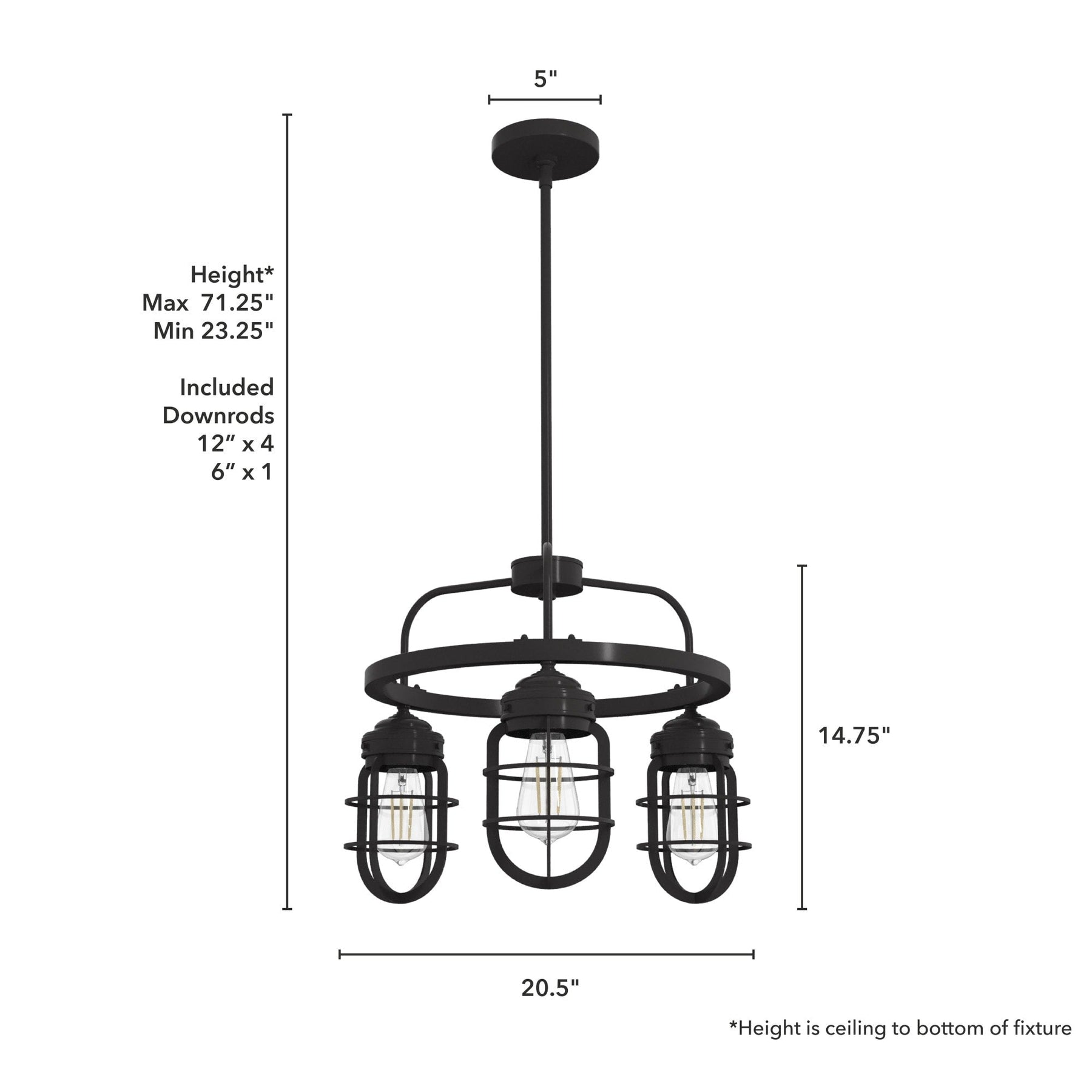 • Adjustable Installation: Comes with adjustable downrods for a customizable hanging length from 23.25 to 71.25 inches.