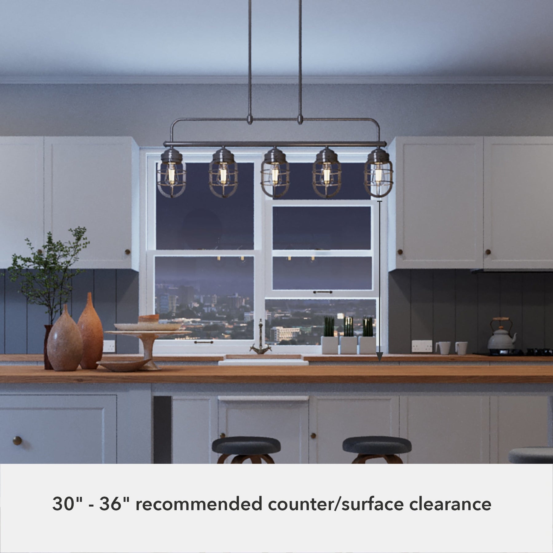 Illuminate your space with the industrial charm of the Hunter Starklake 5-Light Cage Chandelier. Featuring a matte bronze finish and a bold linear design, this chandelier is perfect for adding contemporary elegance to dining rooms, kitchens, or living areas. Its versatile style creates a striking centerpiece, while its design thoughtfully integrates with the Starklake ceiling fan collection for a cohesive decor theme.