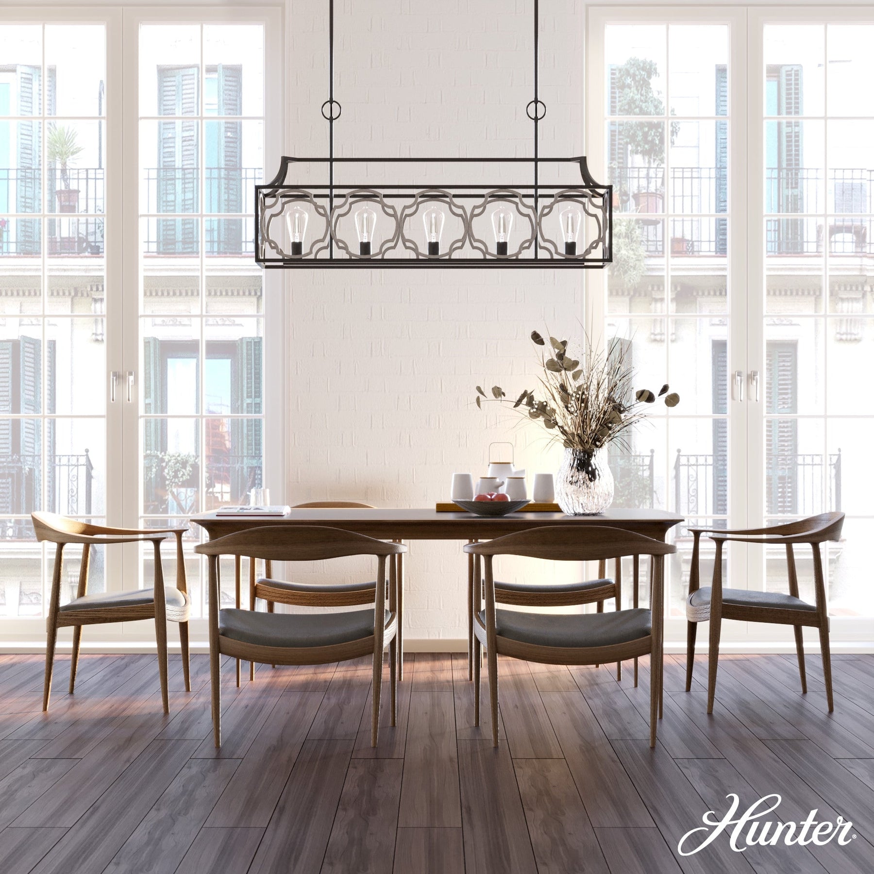 Elevate your space with the Hunter Stone Creek 5-Light Matte Bronze Chandelier, blending rustic elegance with modern design. Its bare bulb style and noble bronze finish add a touch of sophistication, perfect for kitchens, living rooms, and dining areas.