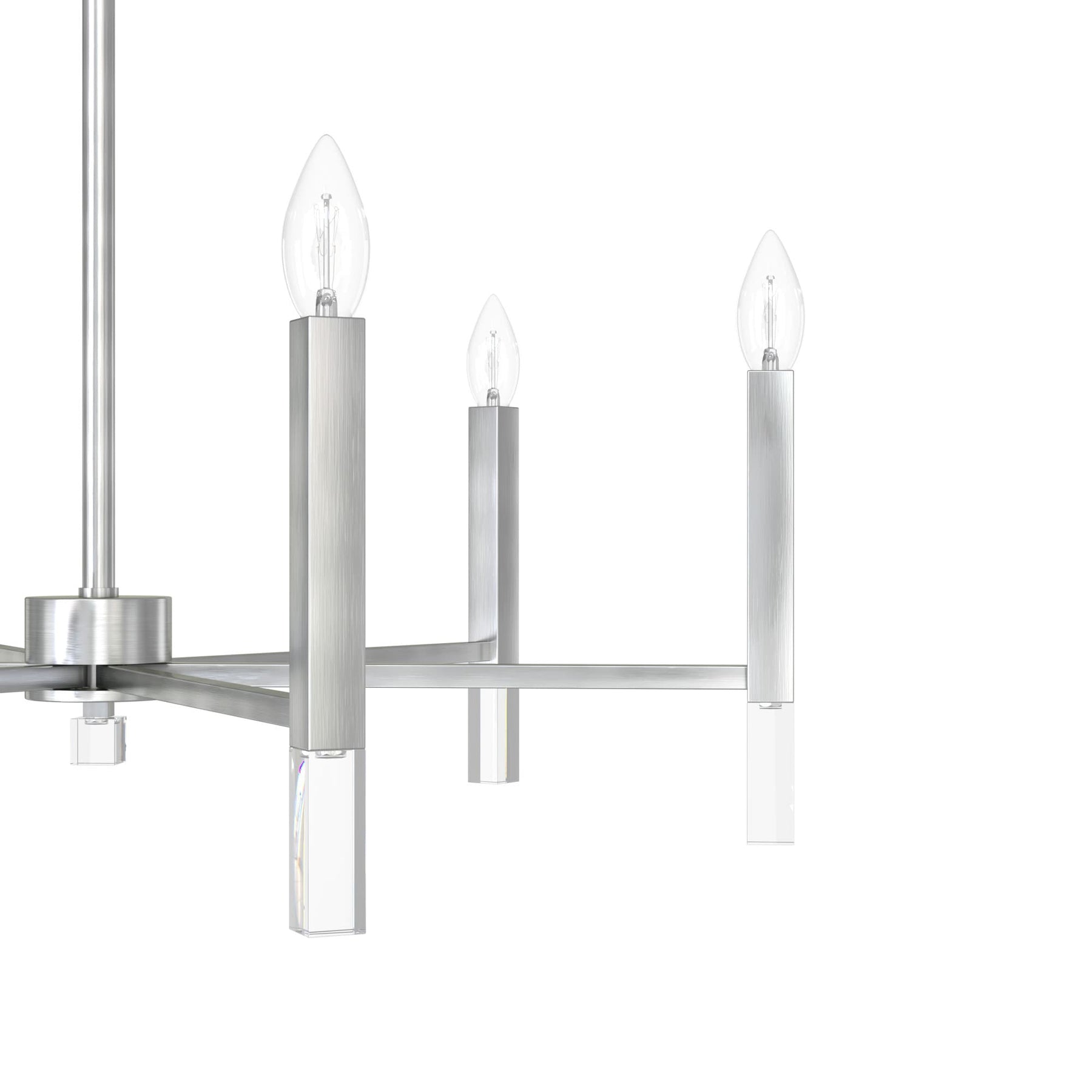 The Sunjai chandelier bathes your room in a warm, sophisticated glow, transforming any ordinary space into a realm of luxury. With its captivating brushed nickel finish and beautifully bare bulbs, this modern design nods to contemporary elegance while remaining effortlessly chic. Style it above your dining table or in a grand foyer to craft an inviting atmosphere that commands attention. The Sunjai is more than just a light—it's an indispensable piece of art that elevates everyday living.