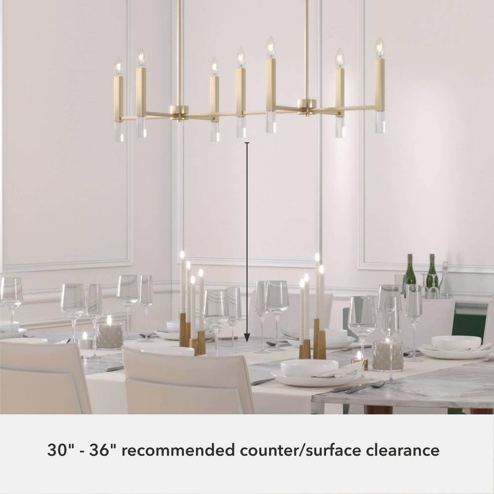 • Modern Glamour: This chandelier combines sleek lines with geometric adornments for a sophisticated touch.