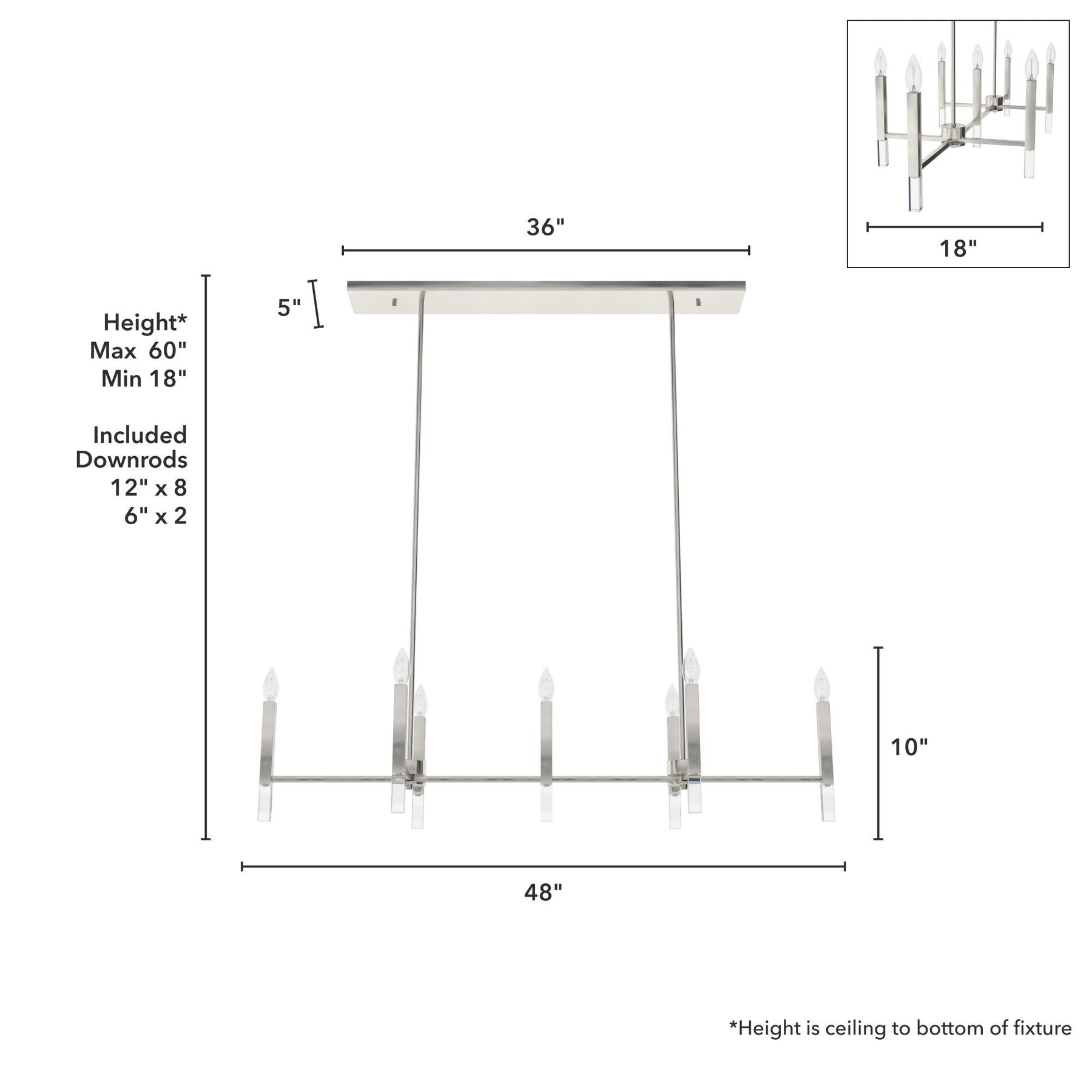 • Adjustable Height: Includes one 6-inch and four 12-inch downrods for customizable hanging lengths from 18 to 60 inches.