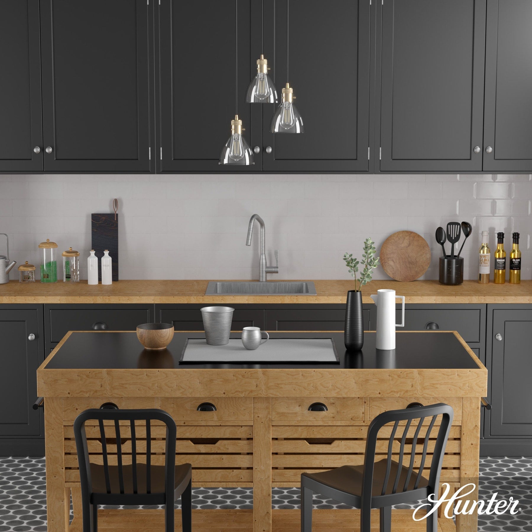 The Hunter Van Nuys 3-Light Alturas Gold Pendant is a transitional masterpiece, flawlessly combining premium materials and flexible function. Its elegant gold finish and clear glass design not only illuminates but also elevates any kitchen, foyer, or dining space. Featuring adjustable hanging lengths up to 130 inches, this fixture is perfect for adaptable yet stylish lighting solutions.