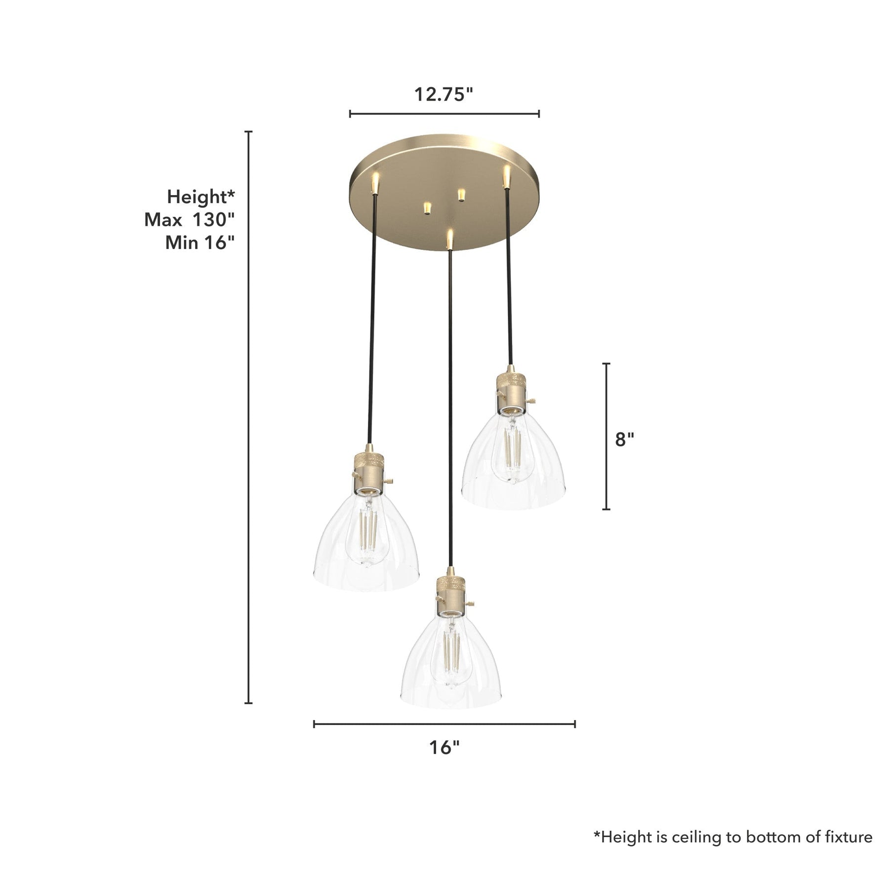 A: The fixture includes adjustable cords that can be cut to your desired length, accommodating ceilings of different heights.