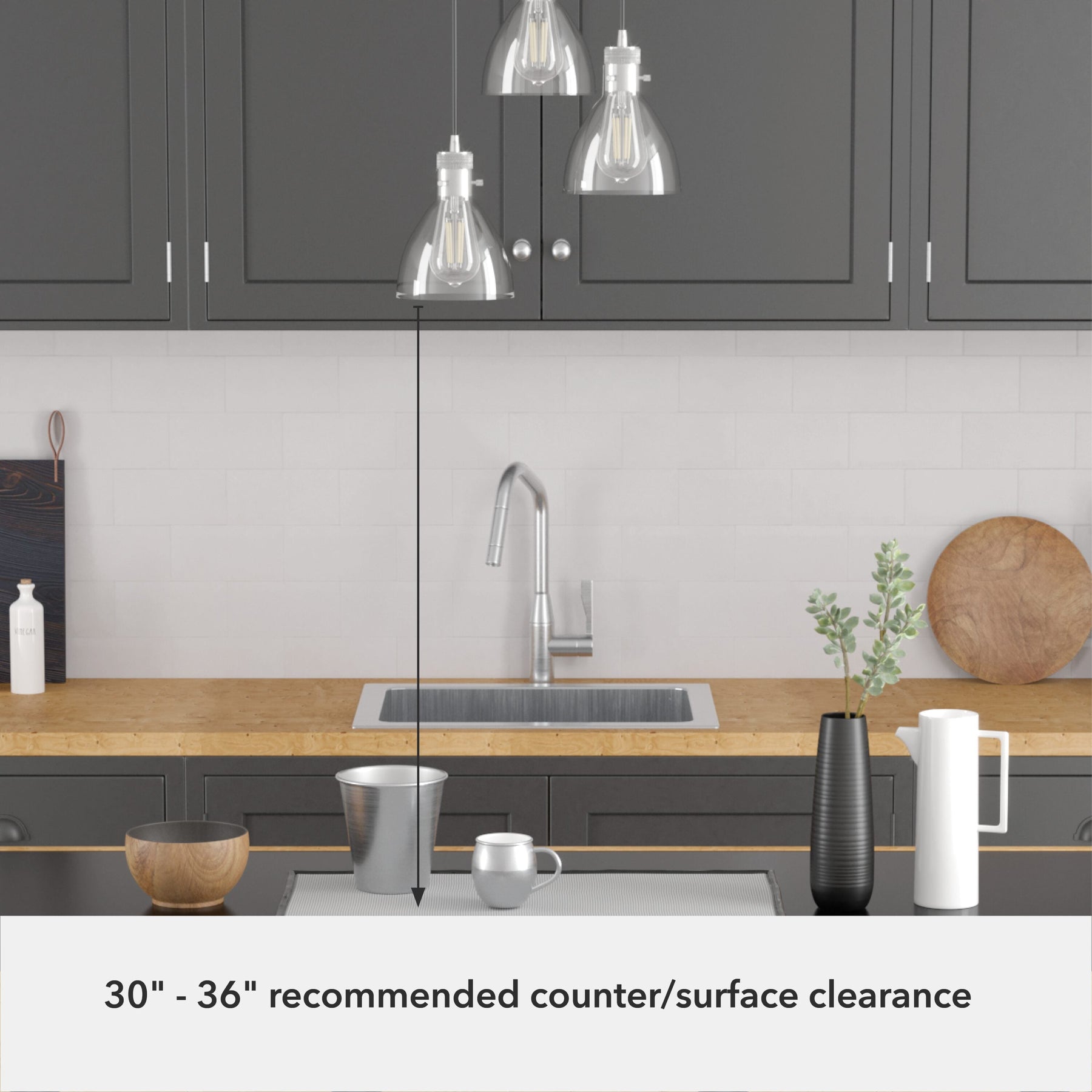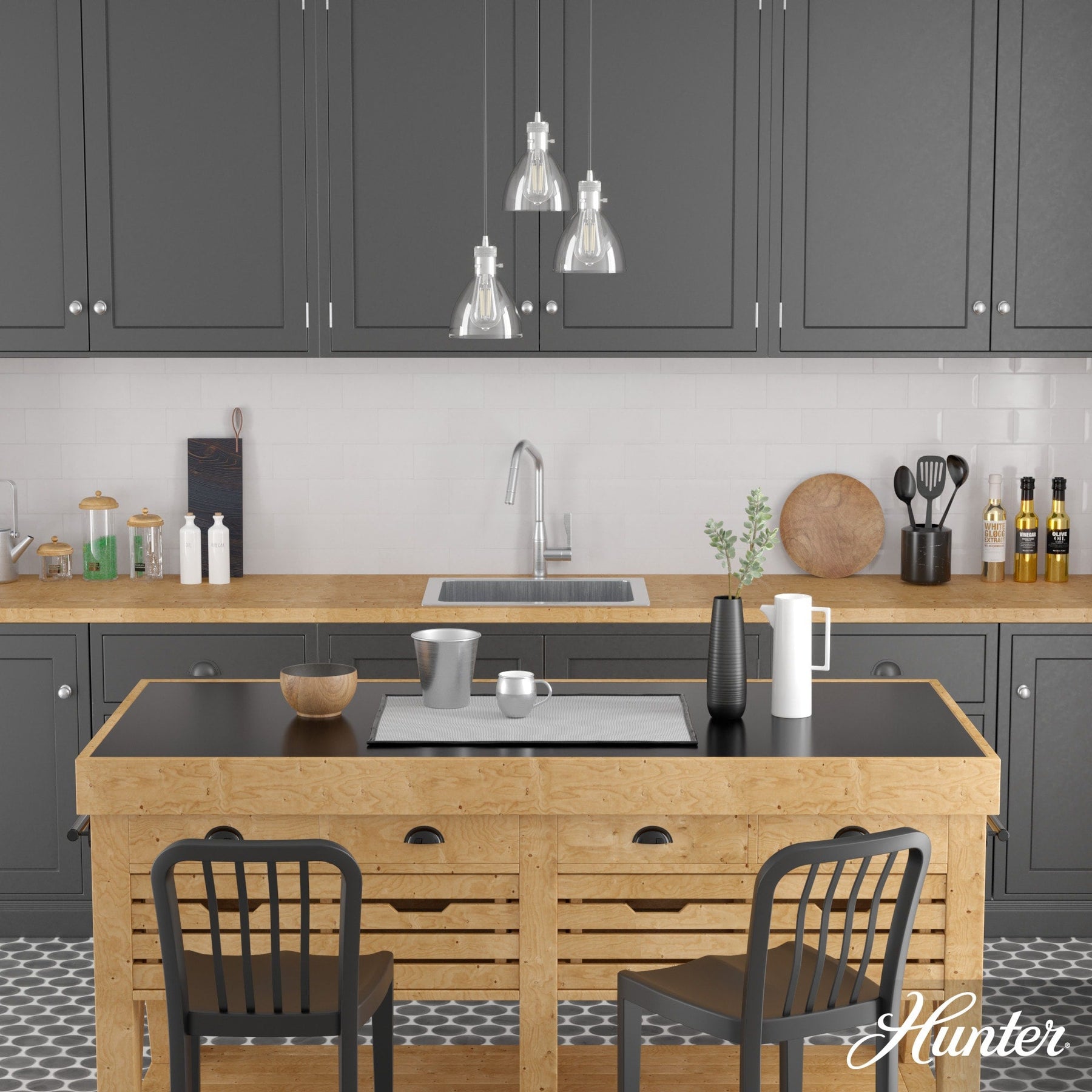 Illuminate your space with the Hunter Van Nuys 3-Light Pendant, a stunning blend of transitional elegance and modern functionality. Featuring a brushed nickel finish and clear glass tiers, this sophisticated fixture provides versatile illumination for kitchens, living rooms, and dining areas. Its durable construction and adjustable hanging length make it perfect for both pros and DIY enthusiasts.