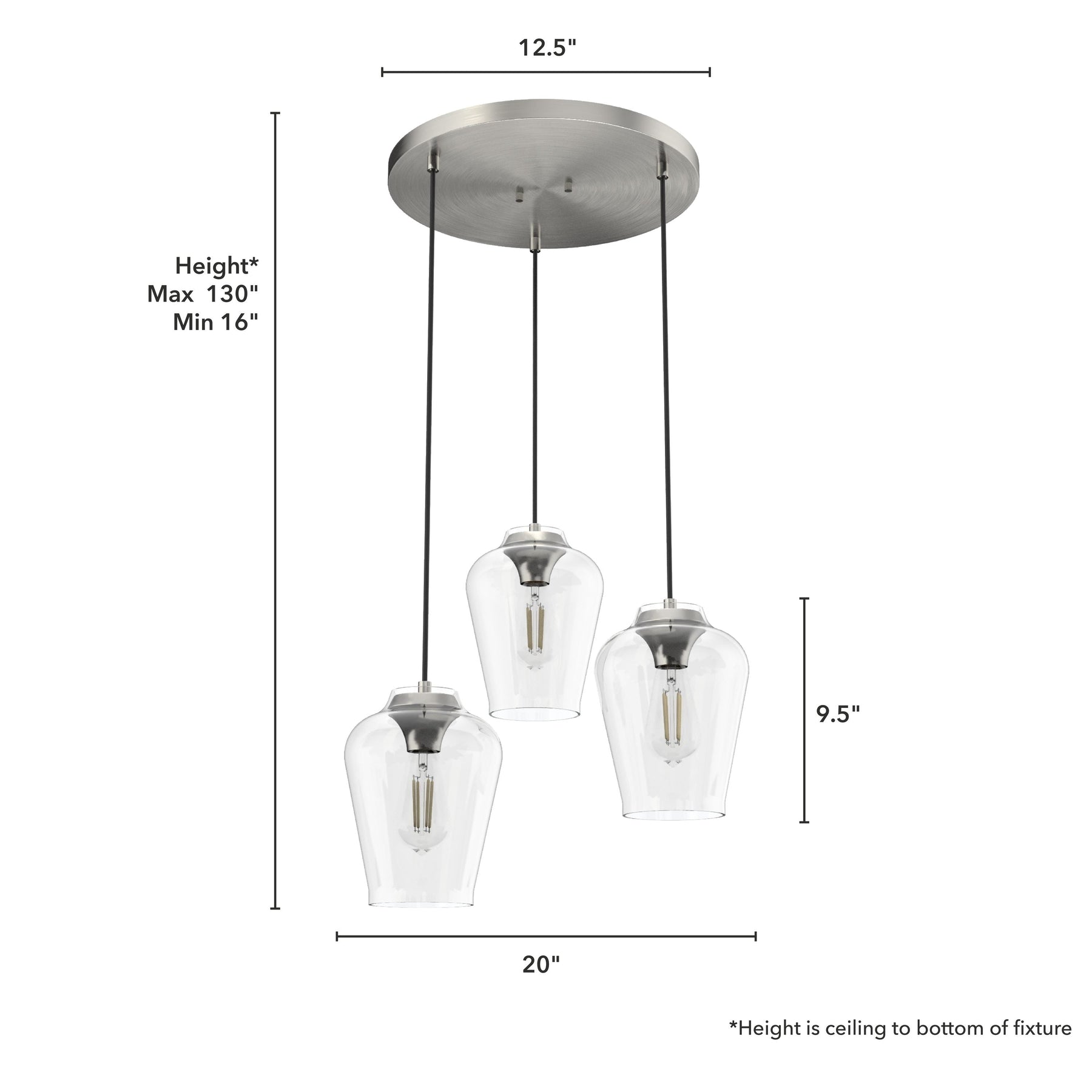 Illuminate your space with the Hunter Vidria 3-Light Brushed Nickel Pendant, a modern marvel of thoughtful design and premium quality. The combination of sleek brushed nickel and clear glass presents a striking, minimalist style while the LED lighting ensures energy efficiency and longevity.