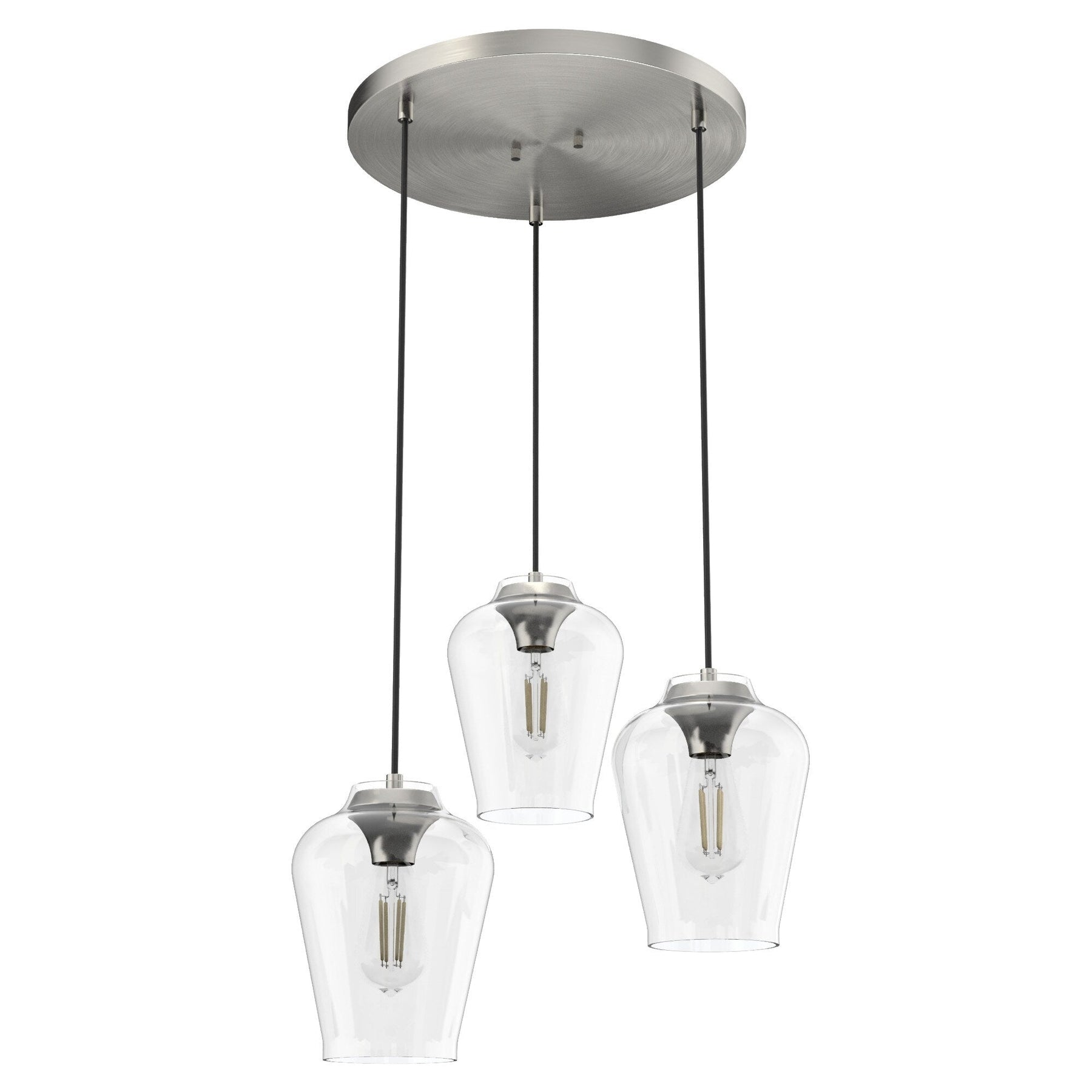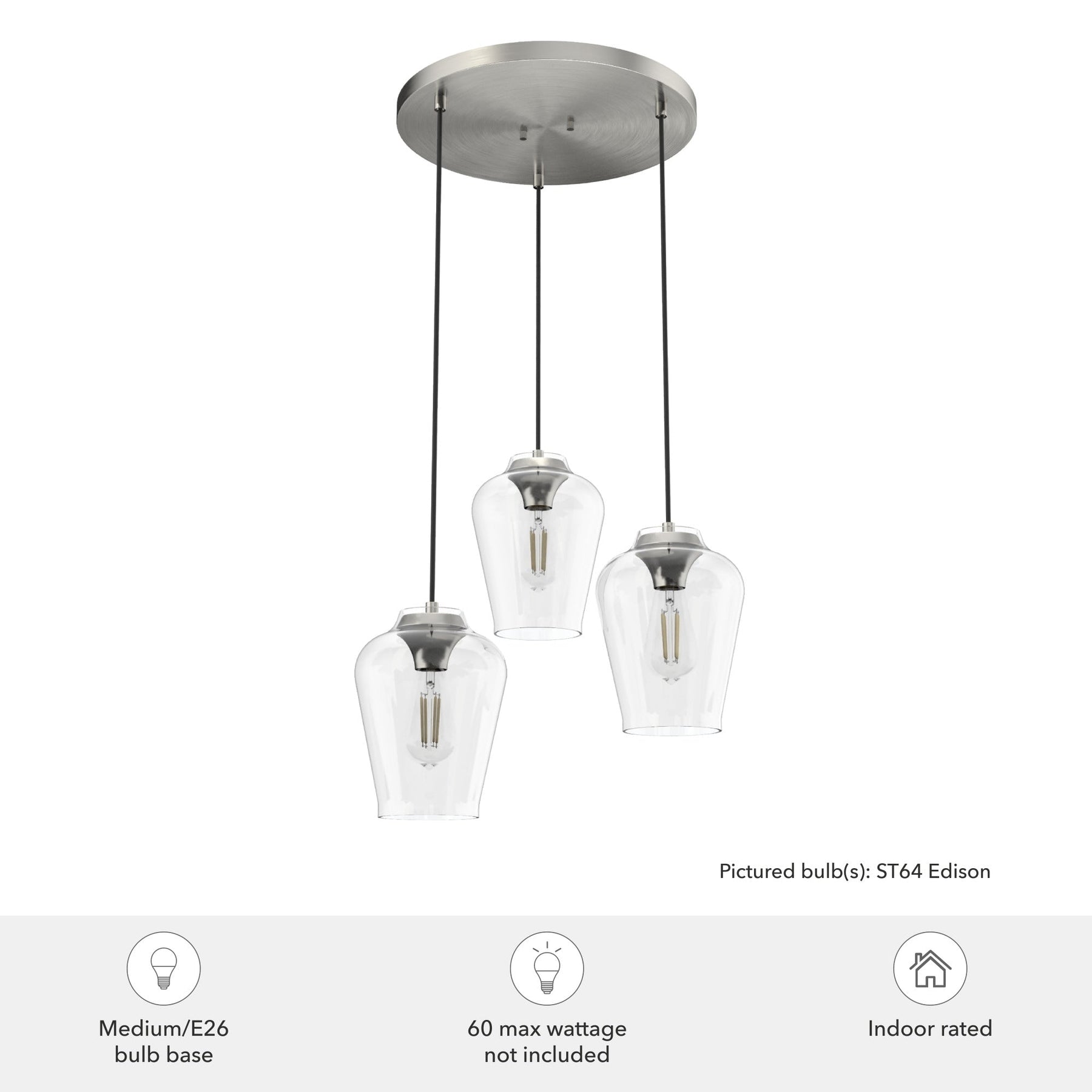 Hunter Vidria 3-Light Brushed Nickel Modern/Contemporary Clear Glass Tiered LED Small Hanging