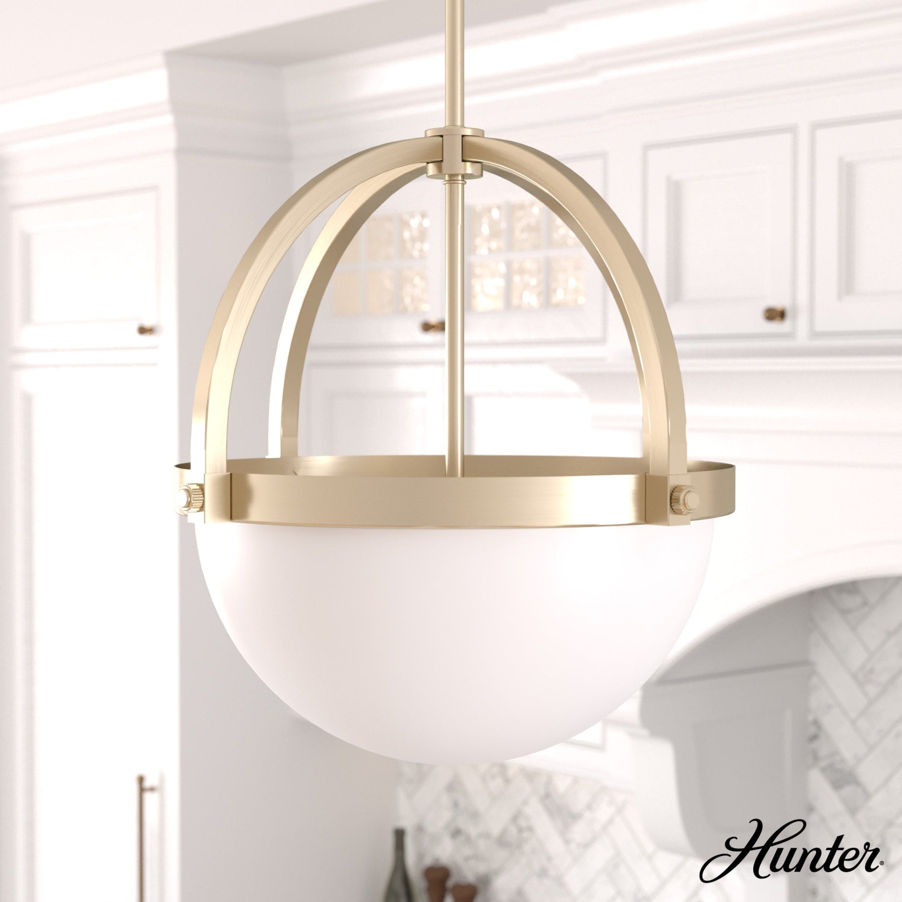 Hunter Wedgefield 3-Light Alturas Gold Transitional Frosted Glass Bowl LED Medium Hanging Kitchen Island Light