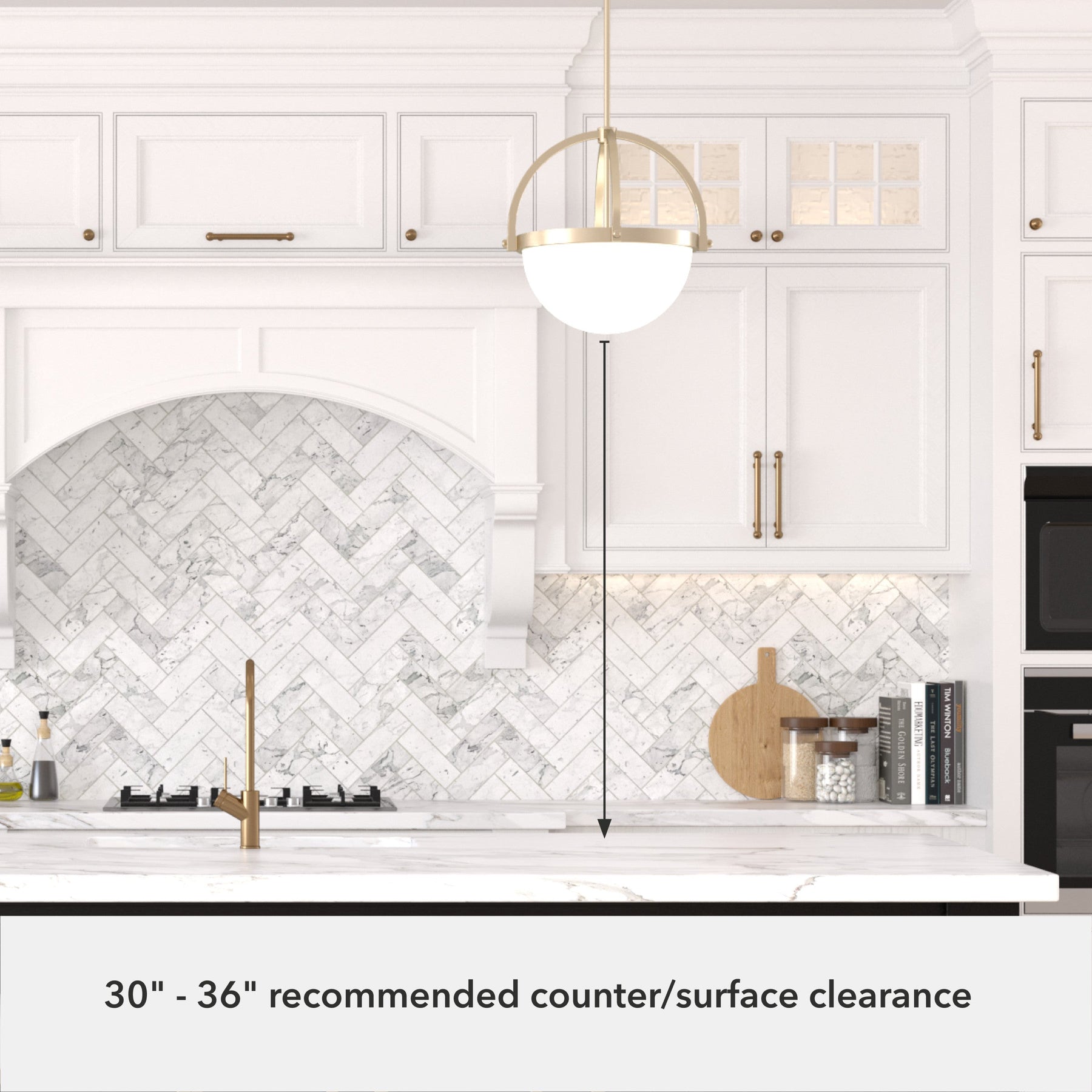 • Premium Design: Features a transitional Alturas Gold finish with frosted glass shading for a stylish look in kitchens and dining areas.