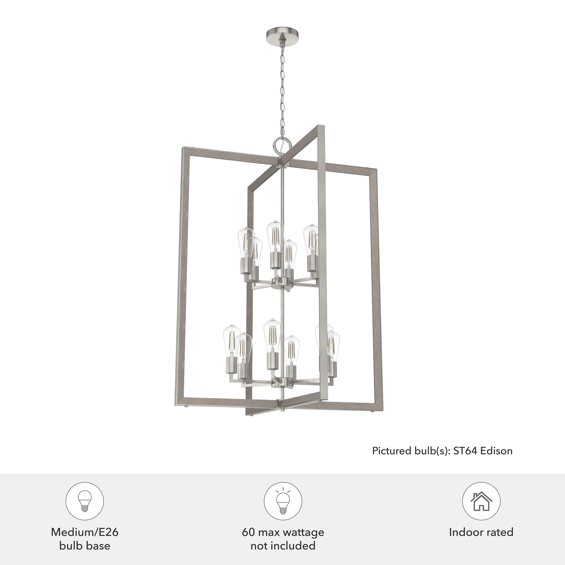Hunter Woodburn 12-Light Brushed Nickel Modern/Contemporary Square LED Large Hanging Kitchen Island Light