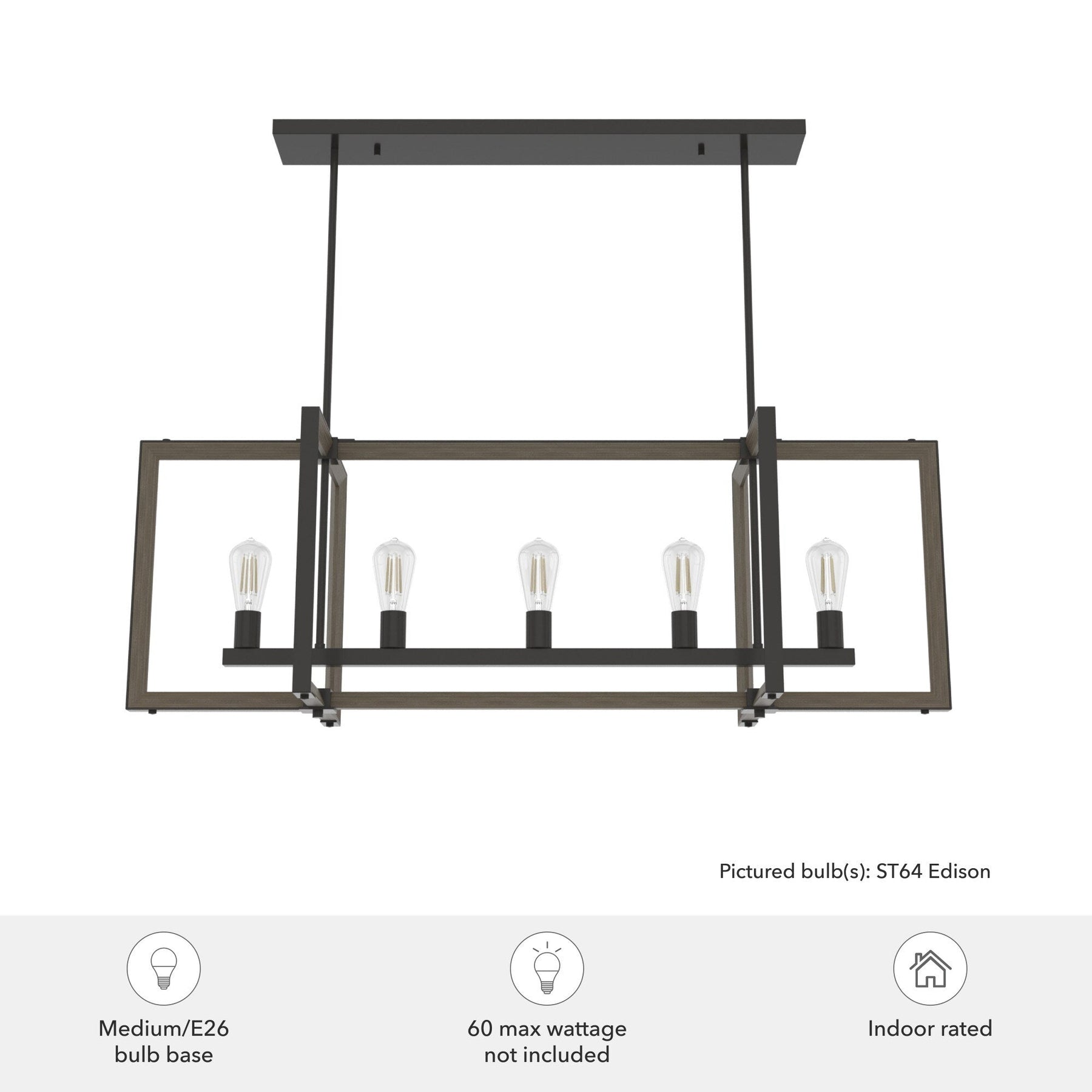 • LED Compatible: Uses five E26-base bulbs, preferably LED, offering energy-efficient lighting options.