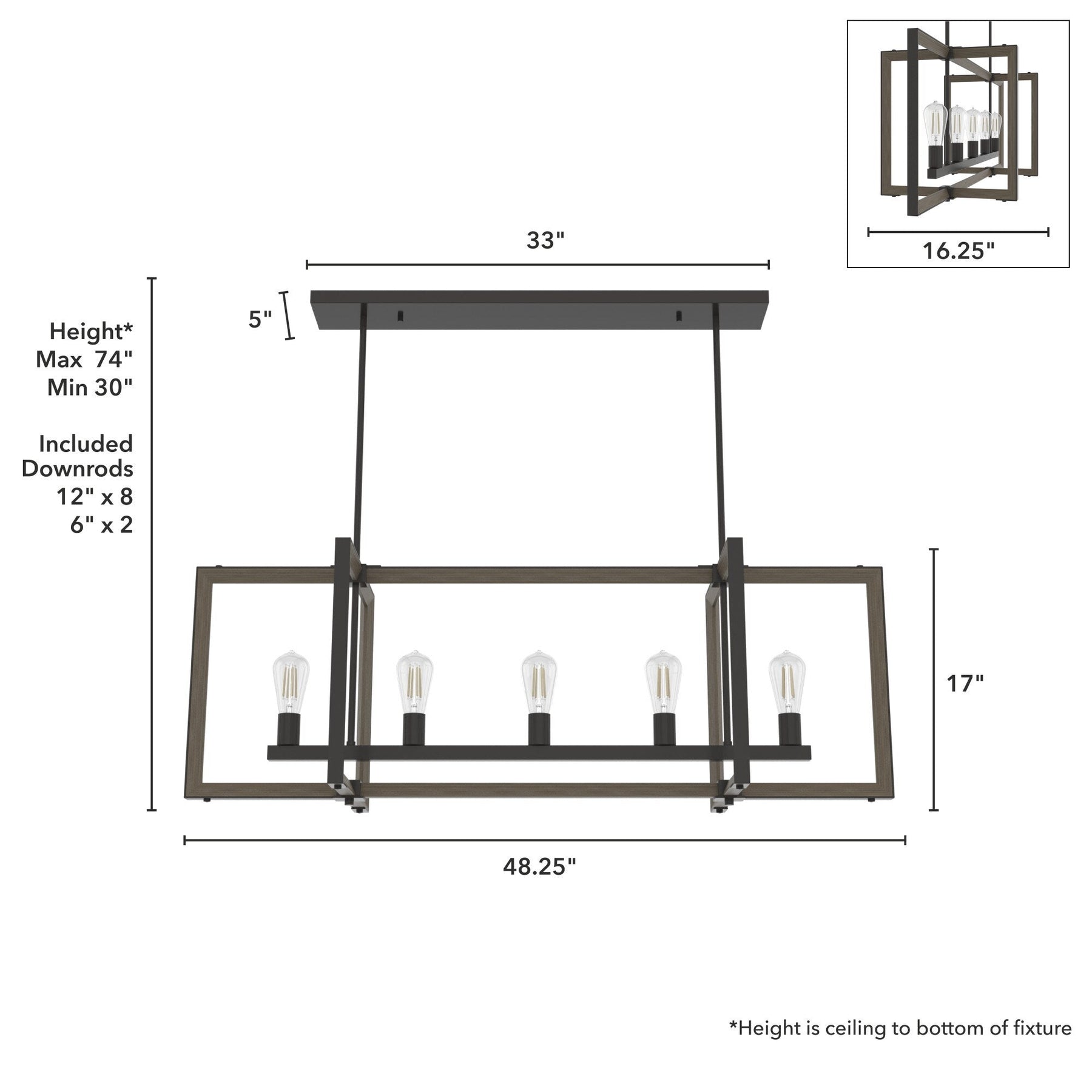 • Adjustable Hanging: Includes various downrods for customizable hanging lengths from 30 to 74 inches.