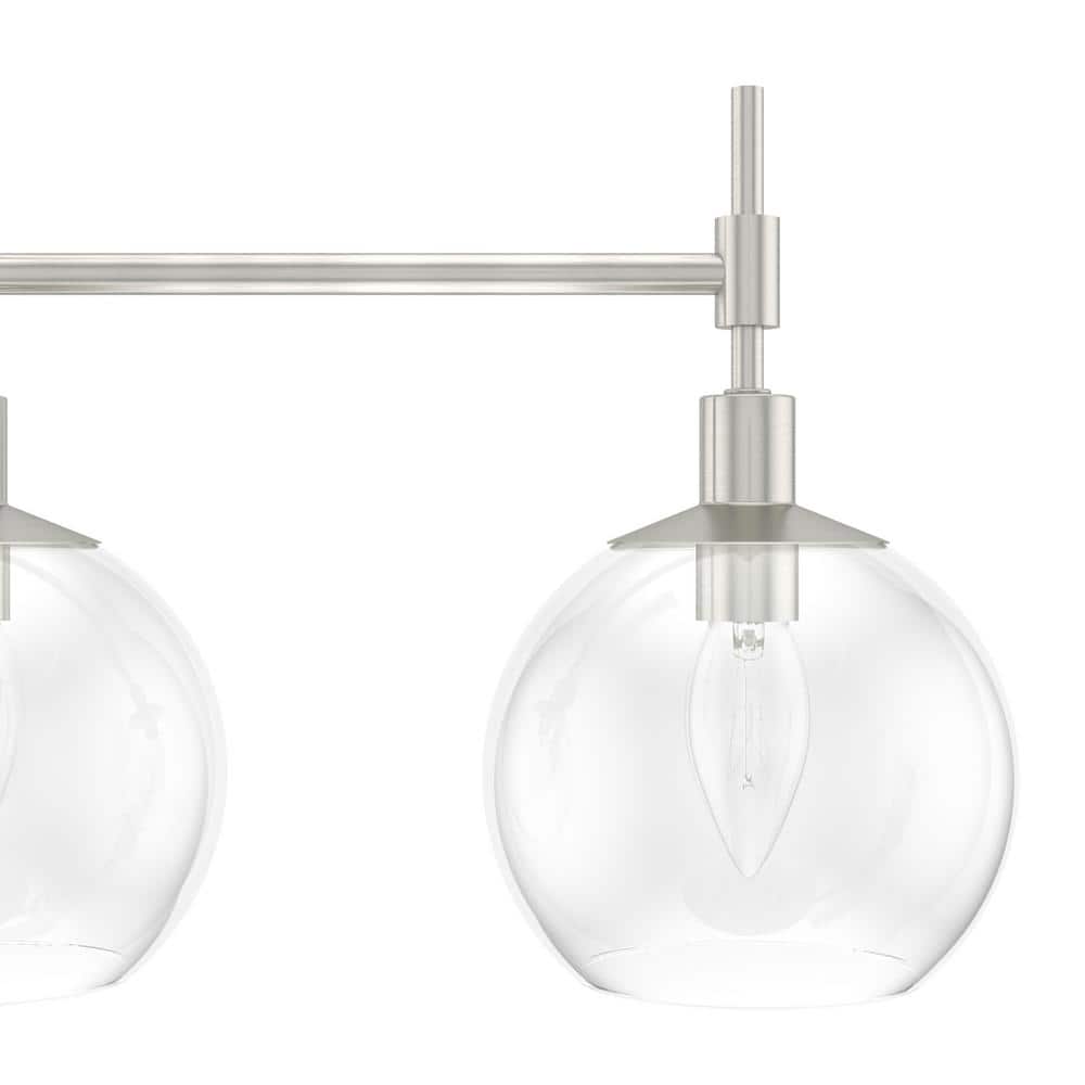 Design: Mid-century modern brushed nickel with clear glass shades for a sleek aesthetic.