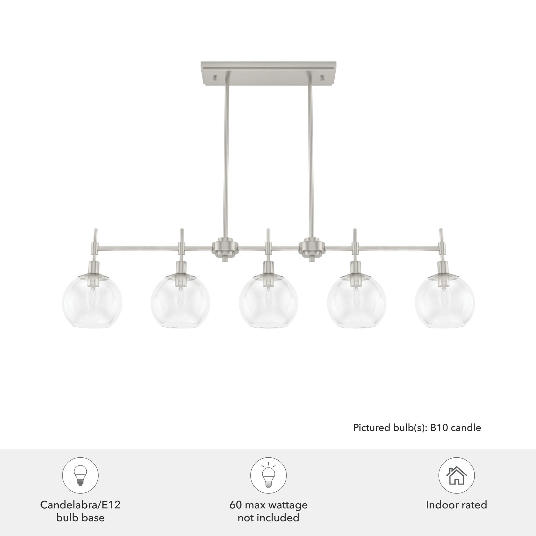 • Premium Design: Features a brushed nickel finish with clear glass shades for a sophisticated look.