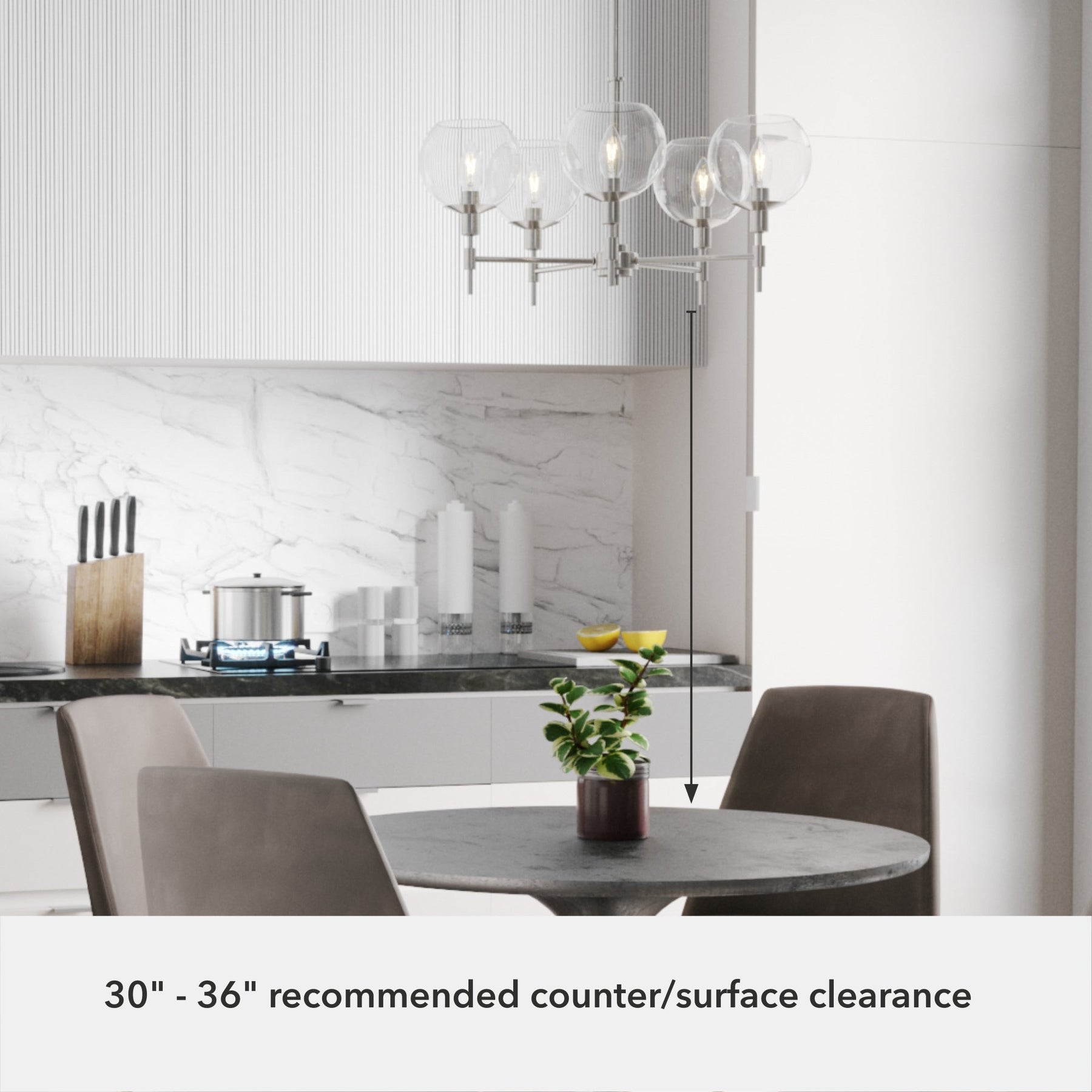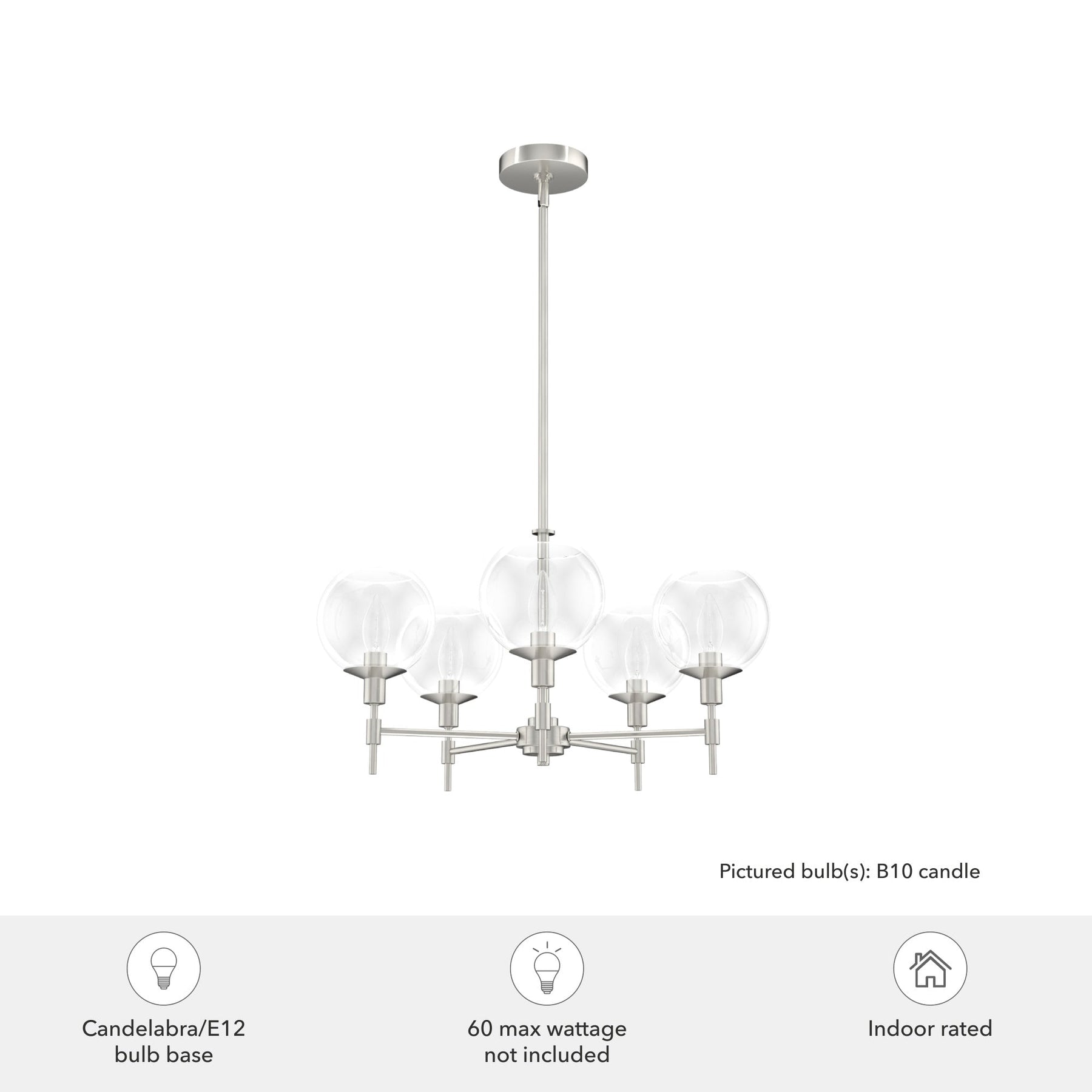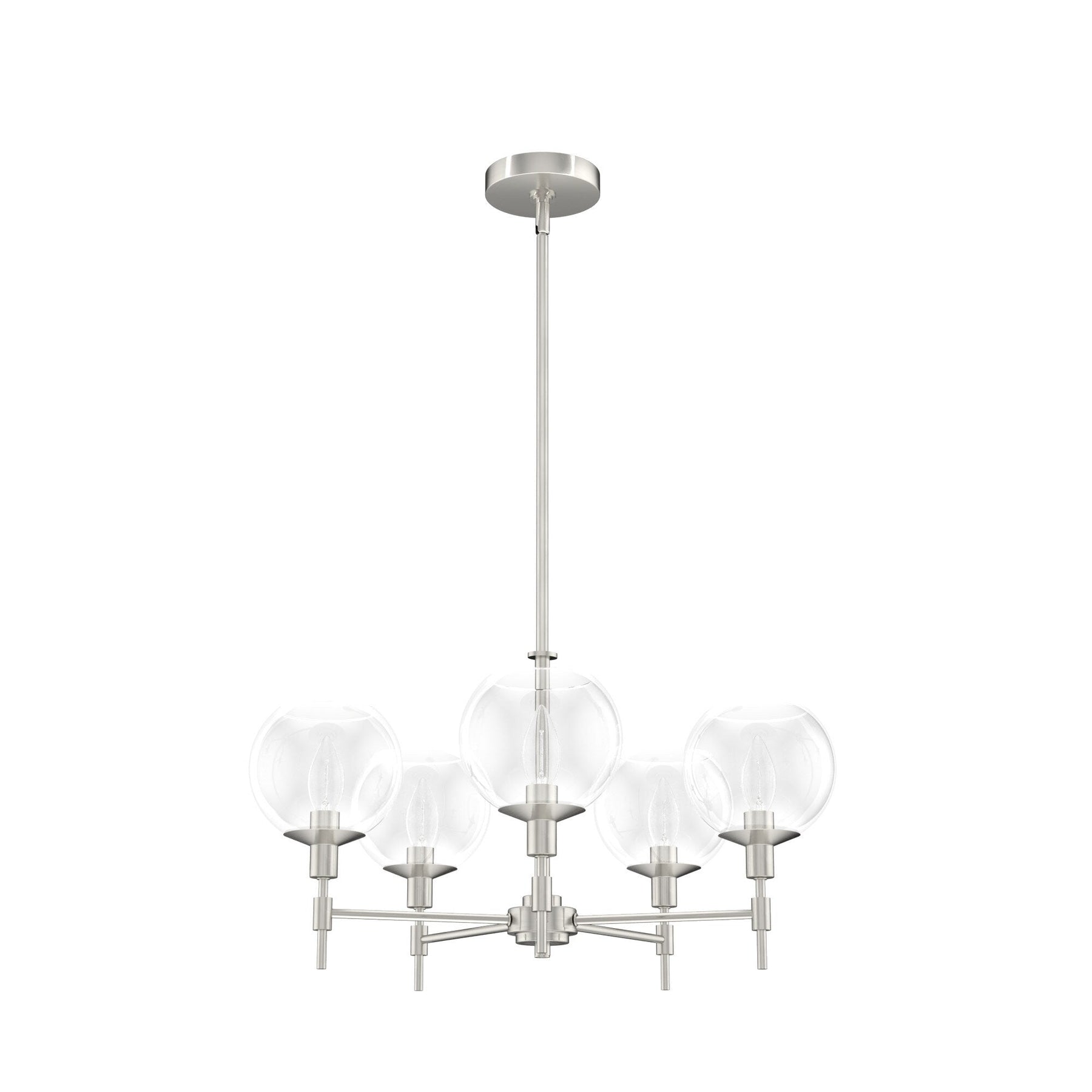 Elevate any room with the Hunter Xidane 5-Light Brushed Nickel Crystal Chandelier, a dazzling mid-century piece that combines elegance with practicality. Its premium clear glass shades and adjustable hanging options make it a versatile choice for kitchens, living areas, and dining rooms.
