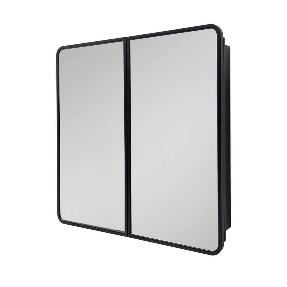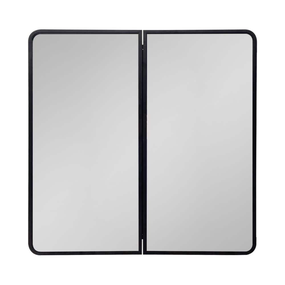 The IHOMEadore 32-inch Black Metal Wall Mount or Recessed Medicine Cabinet combines stylish design with practicality, featuring a durable powder-coated iron finish. With dual mounting options and an ample mirrored surface, it's perfect for enhancing bathroom storage while complementing any decor style. Inside, three adjustable shelves offer flexible organization for all your bathroom essentials.
