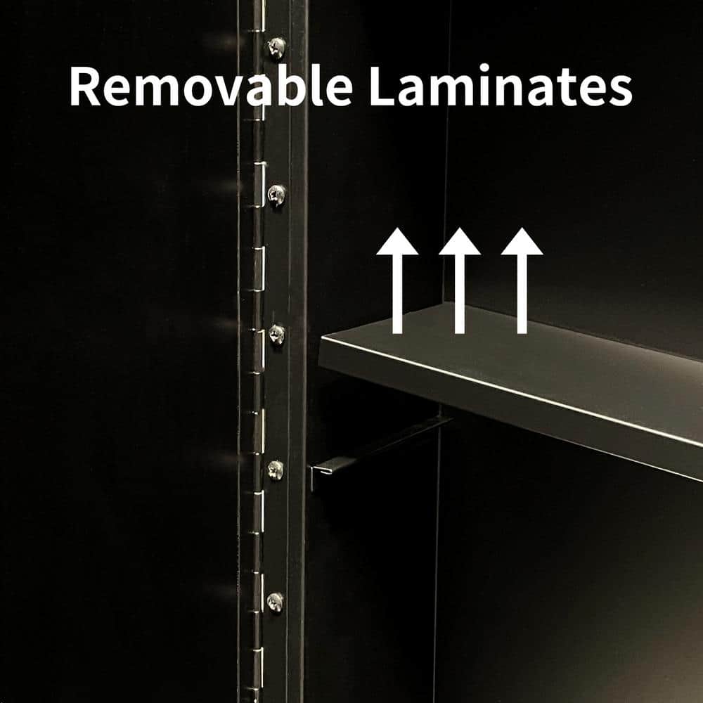 A: The cabinet features dual swing doors that allow easy access to the contents inside.