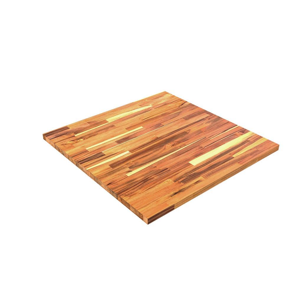 Interbuild 2.3 ft. L x 28 in. D, Teak Butcher Block Table Top Countertop in Clear with Square Edge