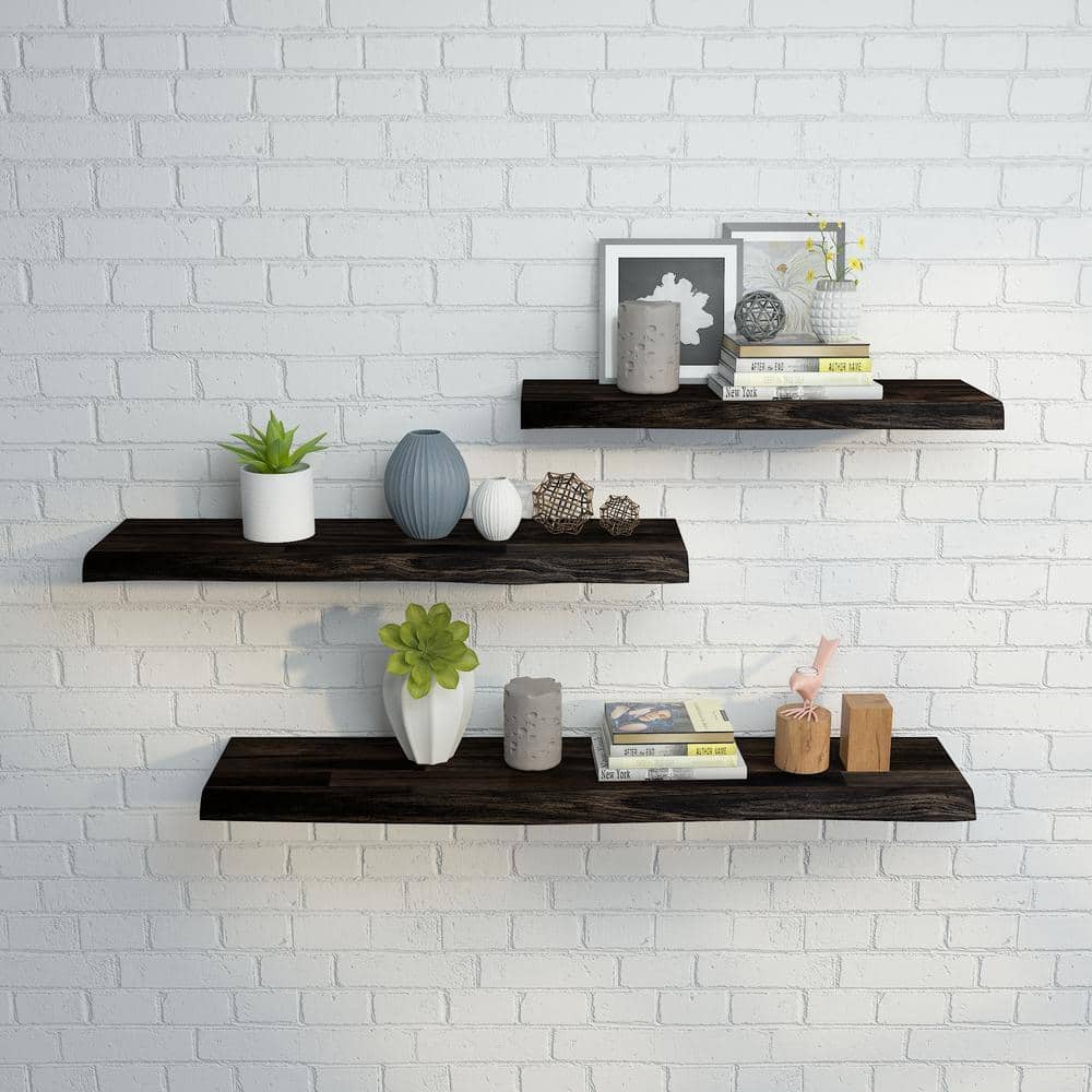 Acacia Butcher Block Floating Wall Shelf - Espresso