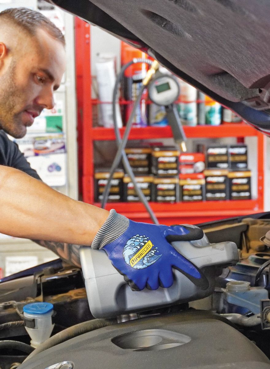 A: These gloves provide splash protection against chemicals, but are best suited for general-purpose tasks involving oil and dry parts.