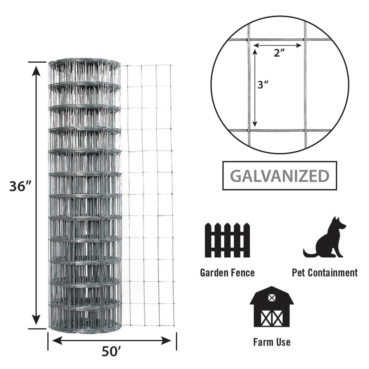 Secure your garden or utility area with the IRONRIDGE Gray Steel Welded Wire Fence. This durable 50-ft long fencing solution features a robust galvanized steel wire with 2-inch by 3-inch mesh openings, ensuring strength and long-lasting corrosion resistance. Perfect for enhancing the safety and aesthetic of your outdoor spaces.