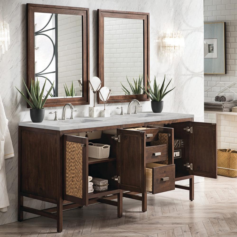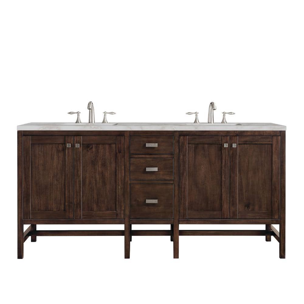 James Martin Vanities Addison 72" Double Vanity in Mid-Century Acacia with Quartz Top