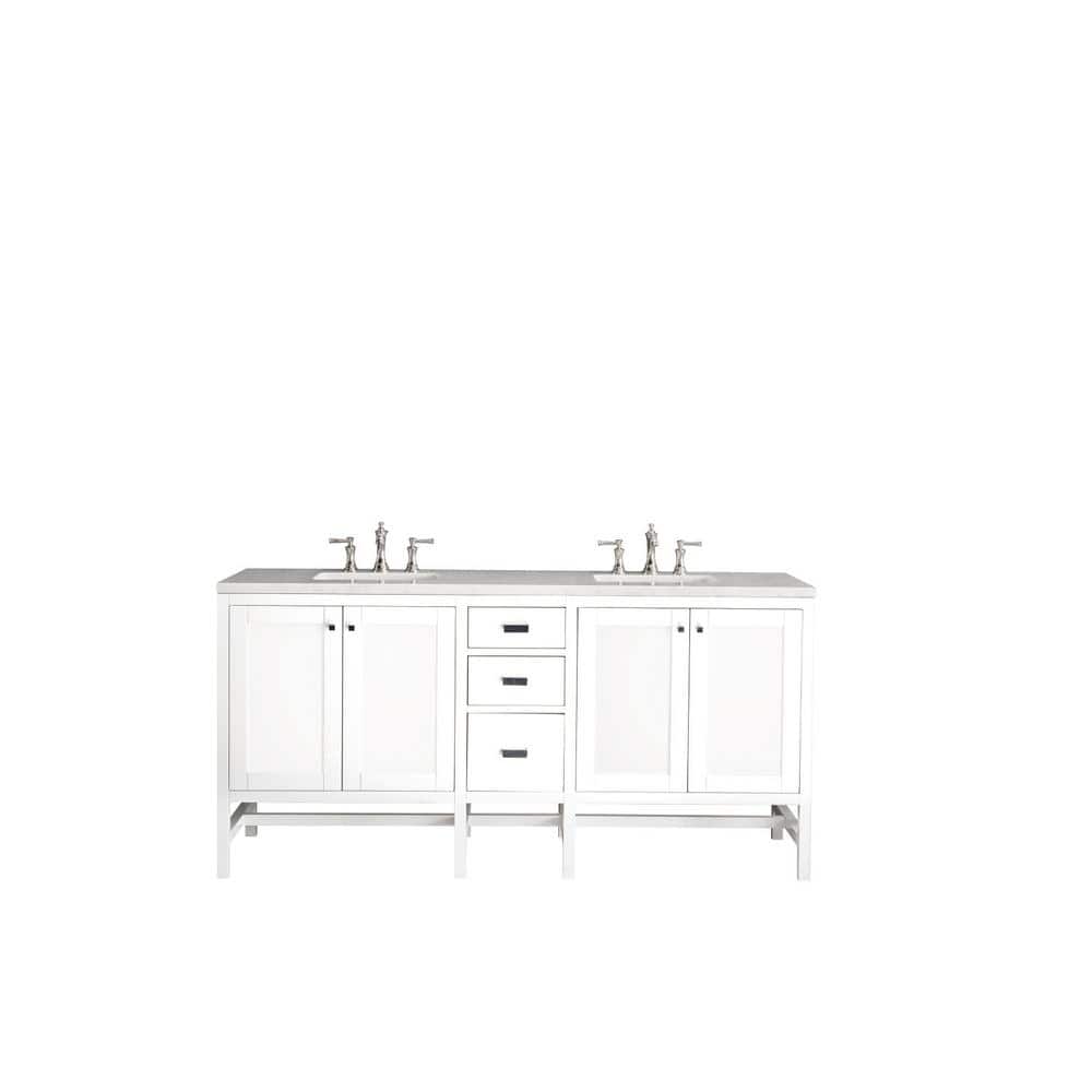 The Addison 72-inch Bath Vanity by James Martin Vanities combines timeless Shaker design with modern functionality. Featuring a glossy white finish, Arctic Fall solid surface top, and double sinks, it offers ample storage and a luxurious aesthetic.