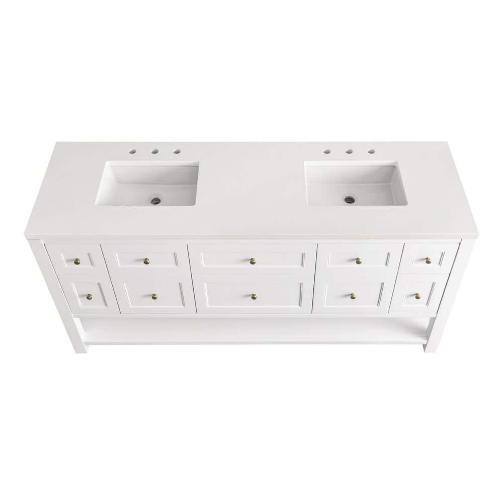 Durable Quartz Top: Includes a White Zeus Quartz top with a porcelain rectangular sink.