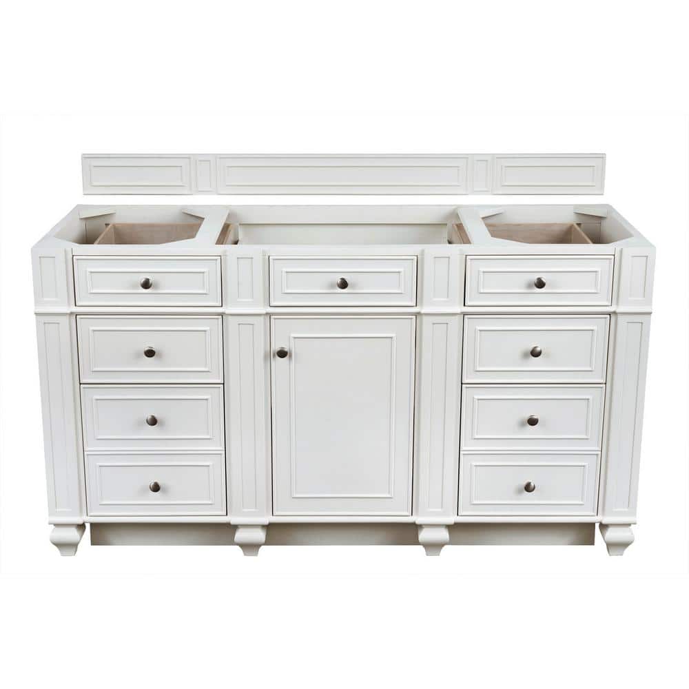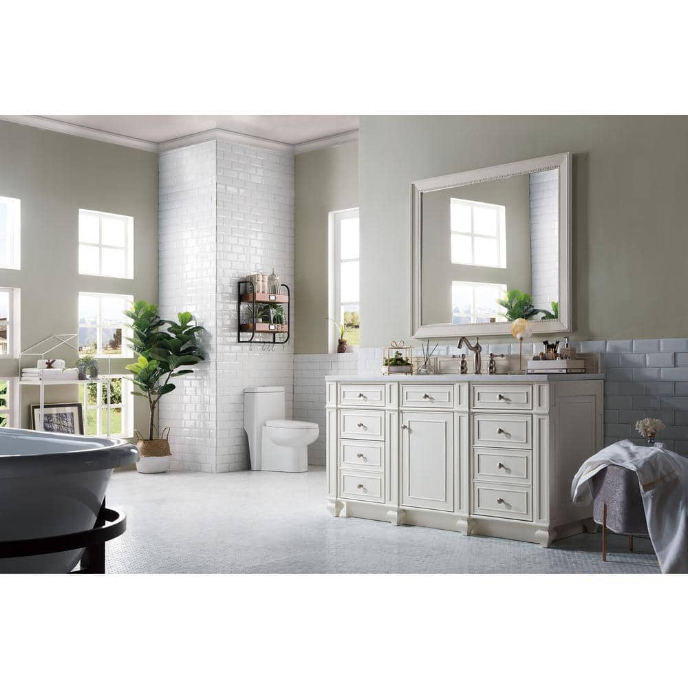 The Bristol 60" Single Bath Vanity Cabinet by James Martin Vanities combines traditional style with modern functionality. Crafted from kiln-dried hardwoods, it features ample storage, soft-close drawers, and a bright white finish for a timeless look.