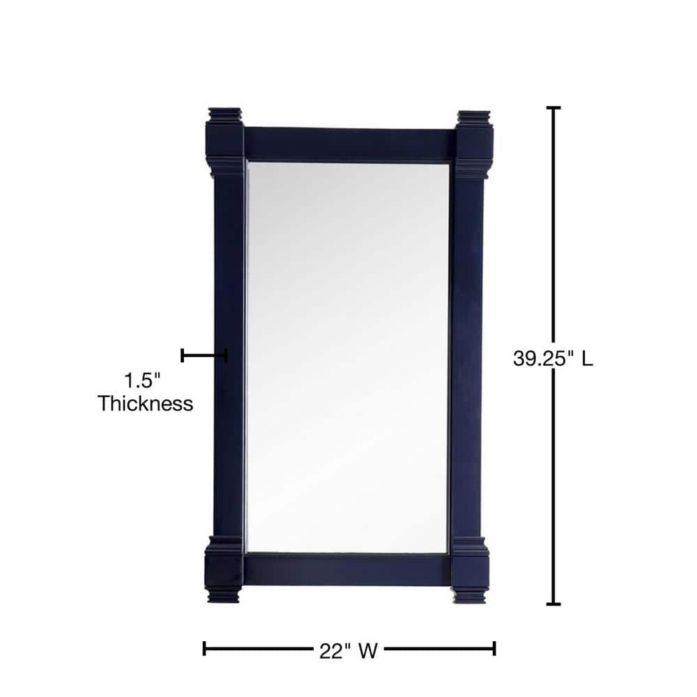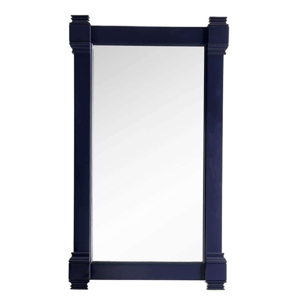 The Brittany Wall Mirror by James Martin Vanities combines traditional and transitional design elements, featuring a solid poplar wood frame and beveled glass edges. Its Victory Blue finish adds a touch of sophistication to any room.