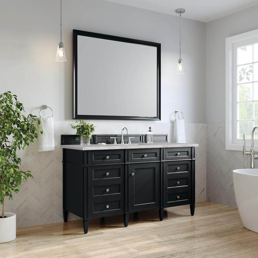 James Martin Vanities Brittany 60" Black Onyx Bathroom Vanity with Quartz Top