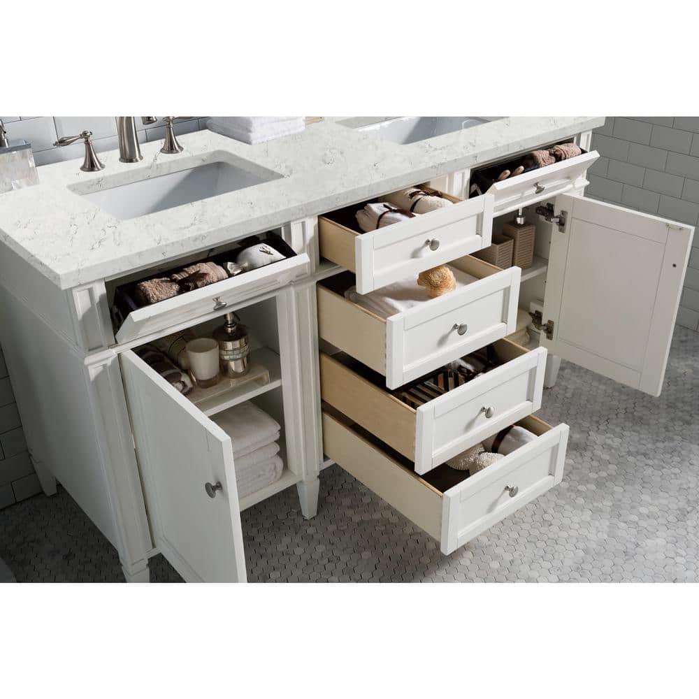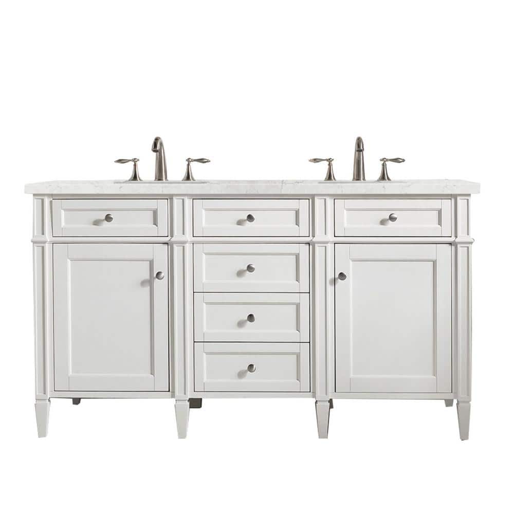 James Martin Vanities Brittany 60-inch Double Bath Vanity in Bright White with Quartz Top