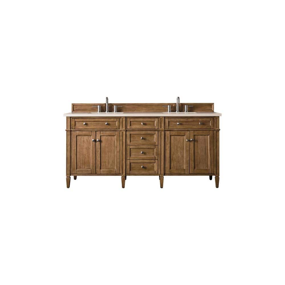 James Martin Vanities Brittany 72" Saddle Brown Bathroom Vanity with Eternal Marfil Quartz Top