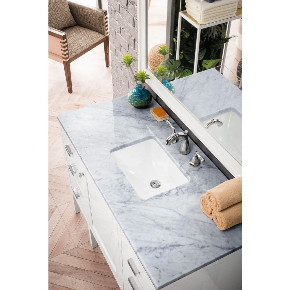 The James Martin Vanities Carrara Marble Vanity Top combines timeless elegance with durable construction. Featuring a polished Carrara White marble surface and a porcelain undermount sink, this vanity top is pre-drilled for easy faucet installation. Its classic design complements a variety of bathroom styles.