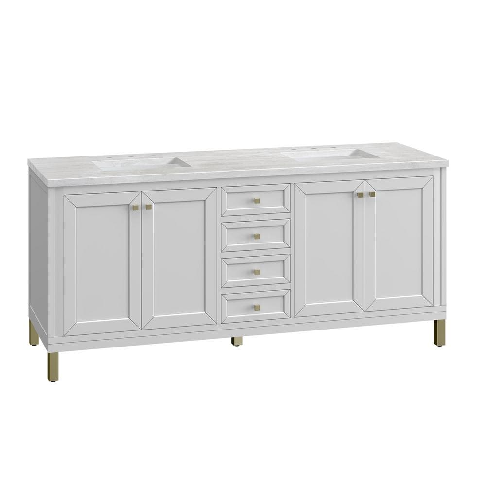 James Martin Vanities Chicago 72" Double Vanity in Glossy White with Arctic Fall Top