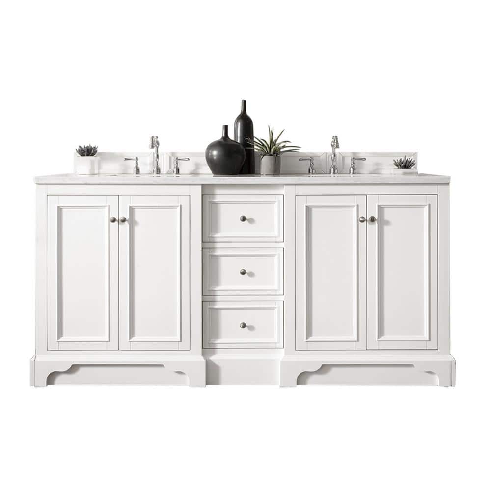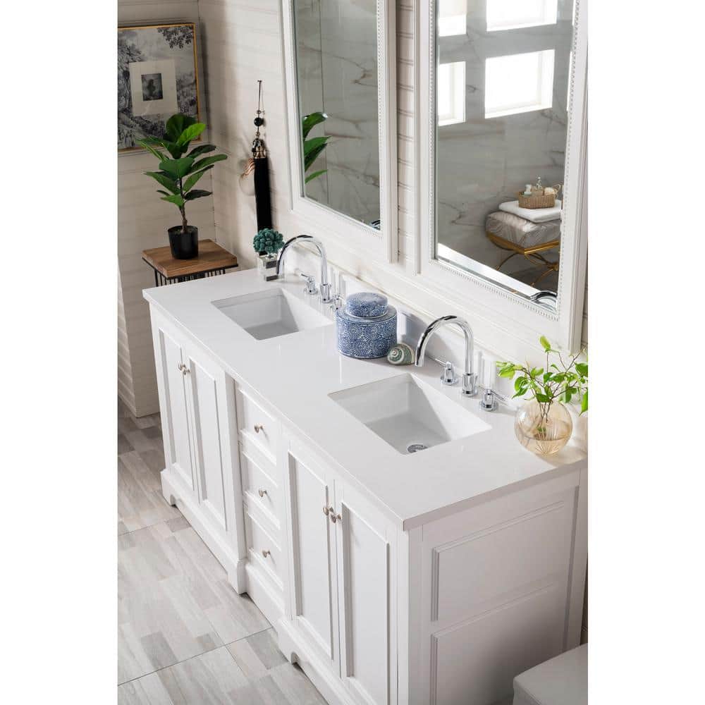 James Martin Vanities De Soto 73.3" Bright White Double Vanity with White Zeus Quartz Top